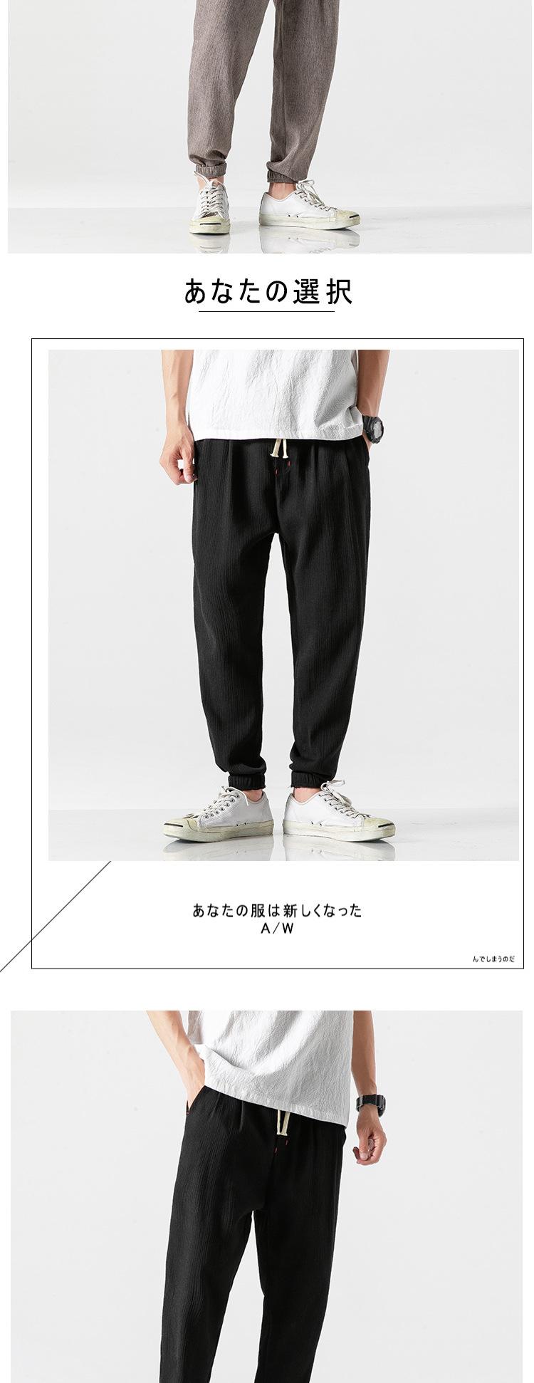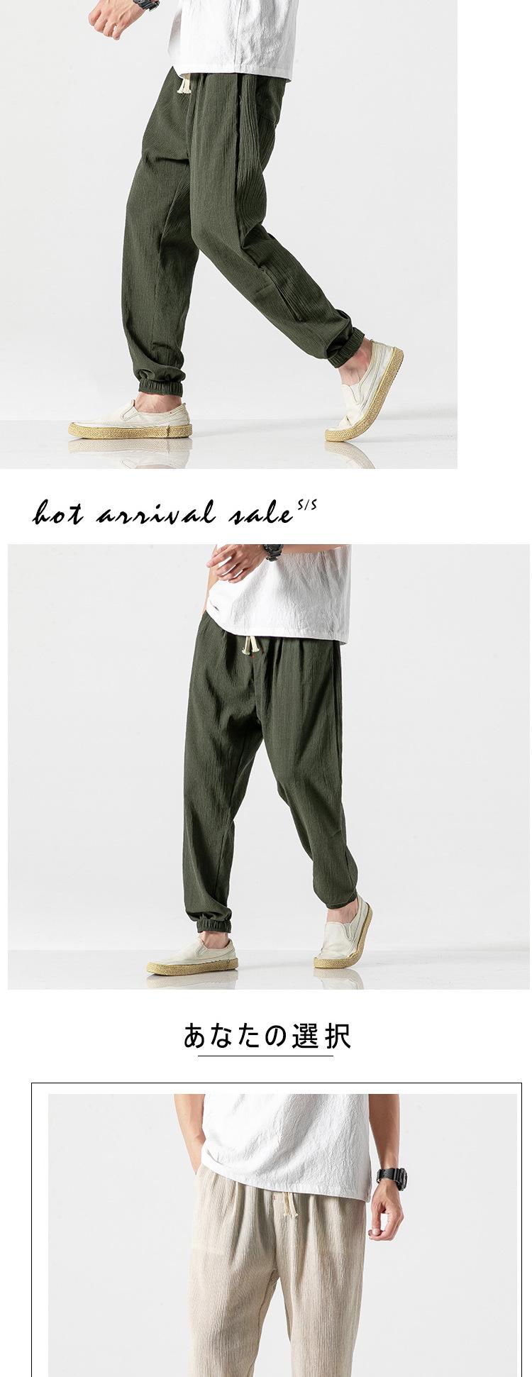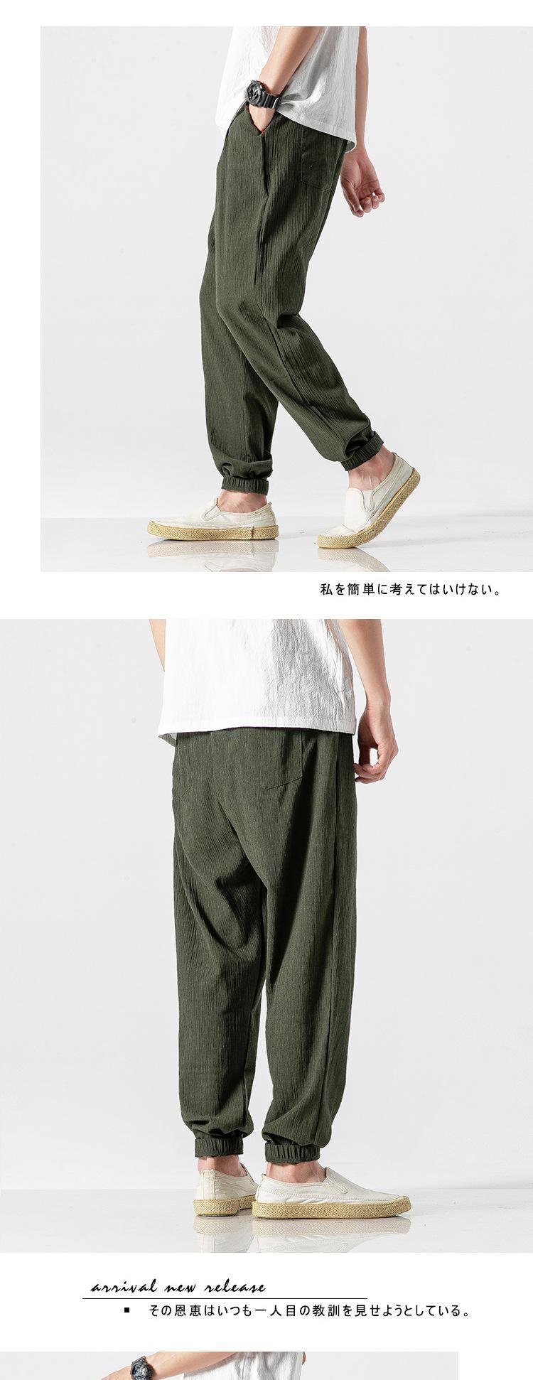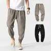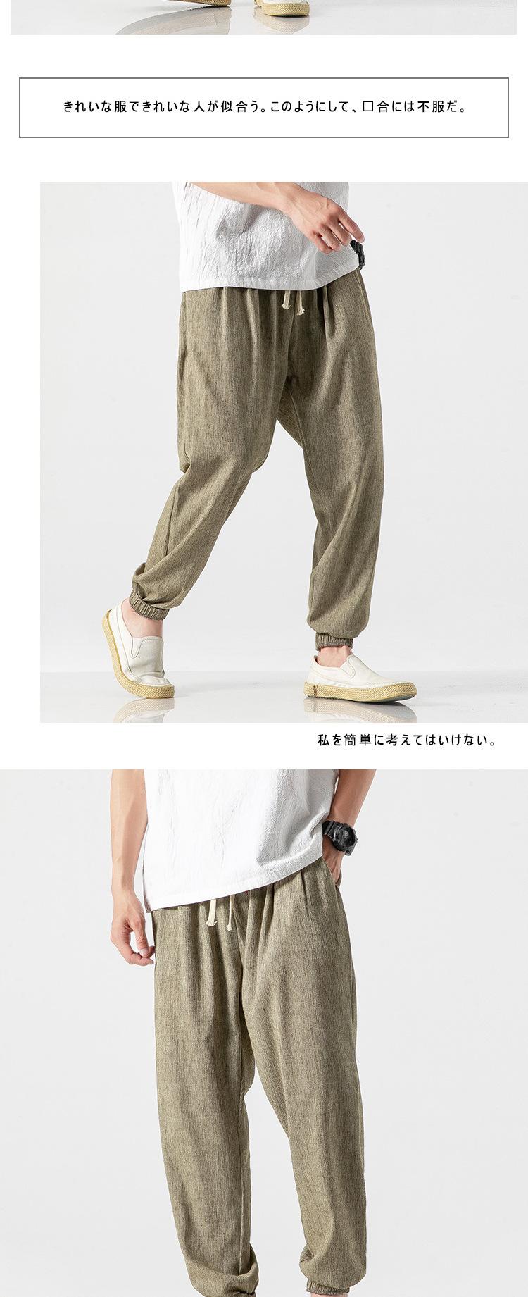 Pantalones de Tobillo de Algodón y Lino para Hombre de Comercio Exterior Transfronterizo Verano Talla Grande Estilo Chino Japonés Bombachos Delgados Pantalones de Lino para Hombre