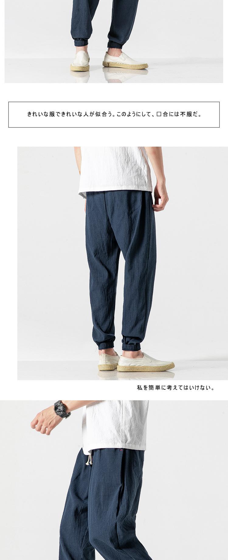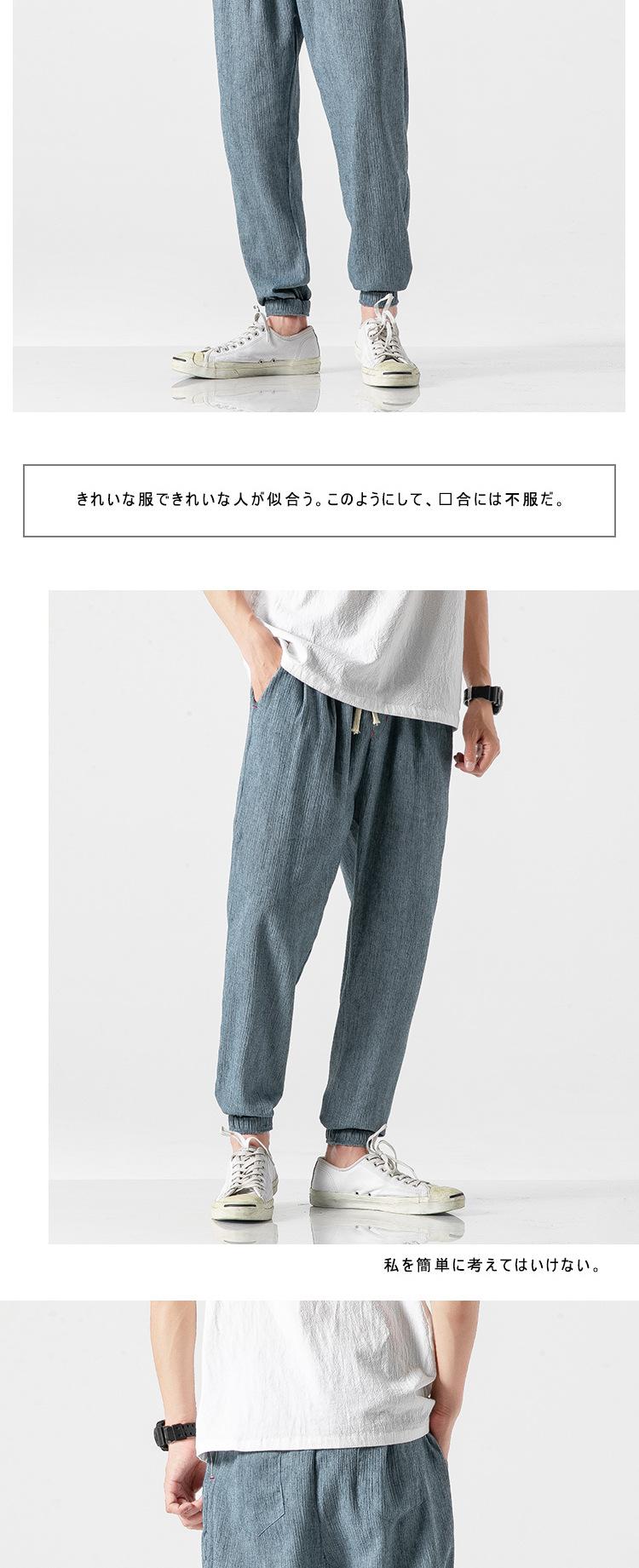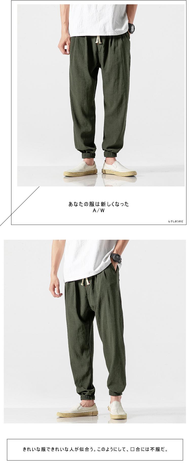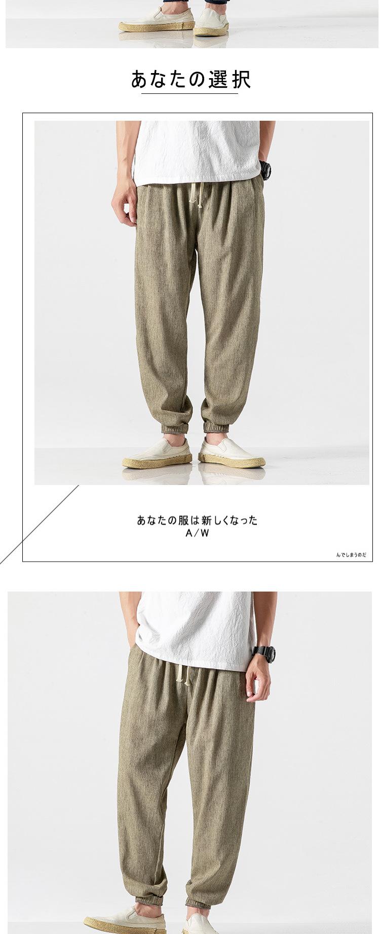 Pantalones de Tobillo de Algodón y Lino para Hombre de Comercio Exterior Transfronterizo Verano Talla Grande Estilo Chino Japonés Bombachos Delgados Pantalones de Lino para Hombre