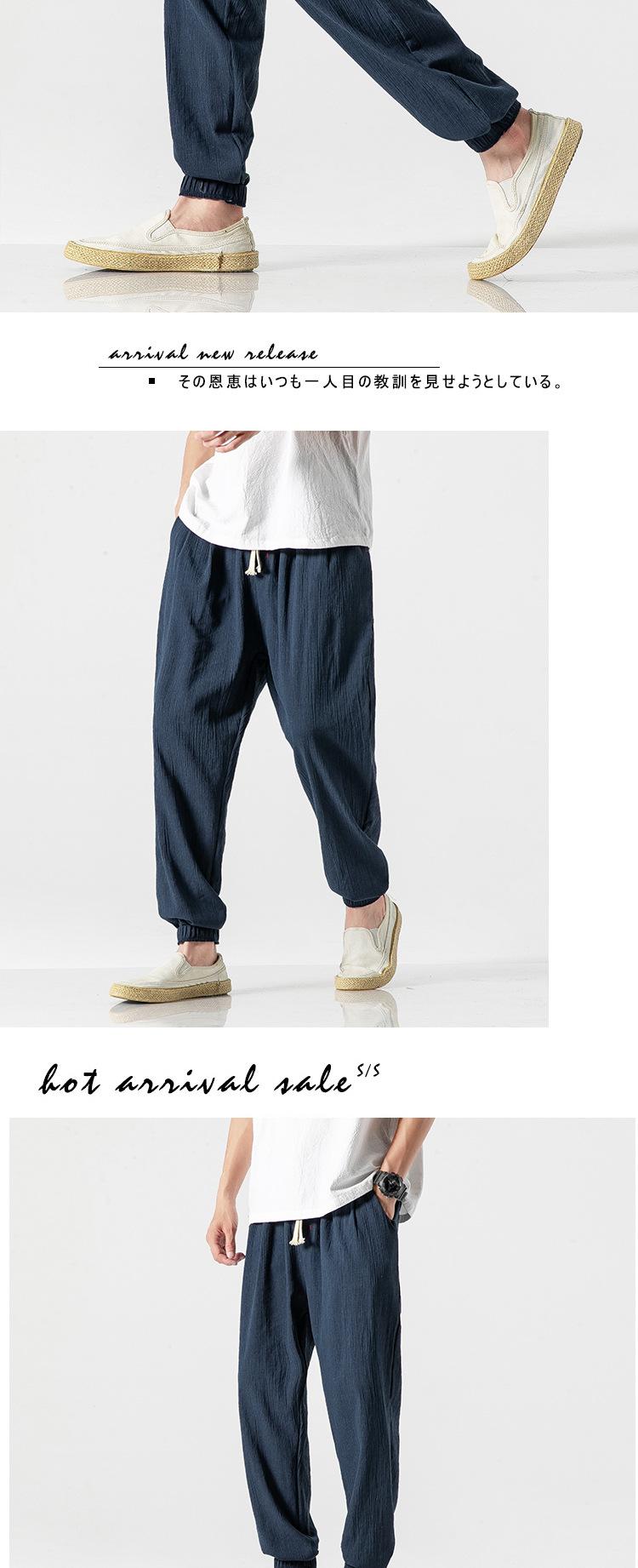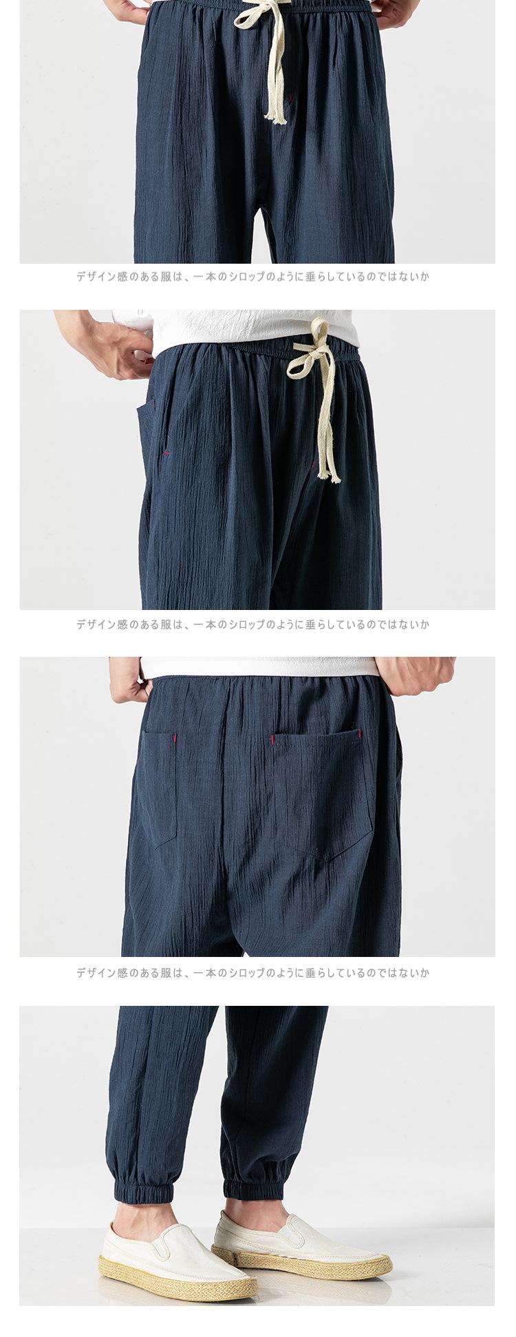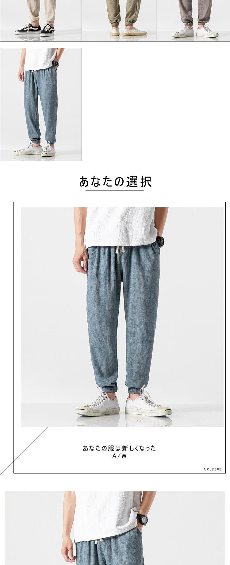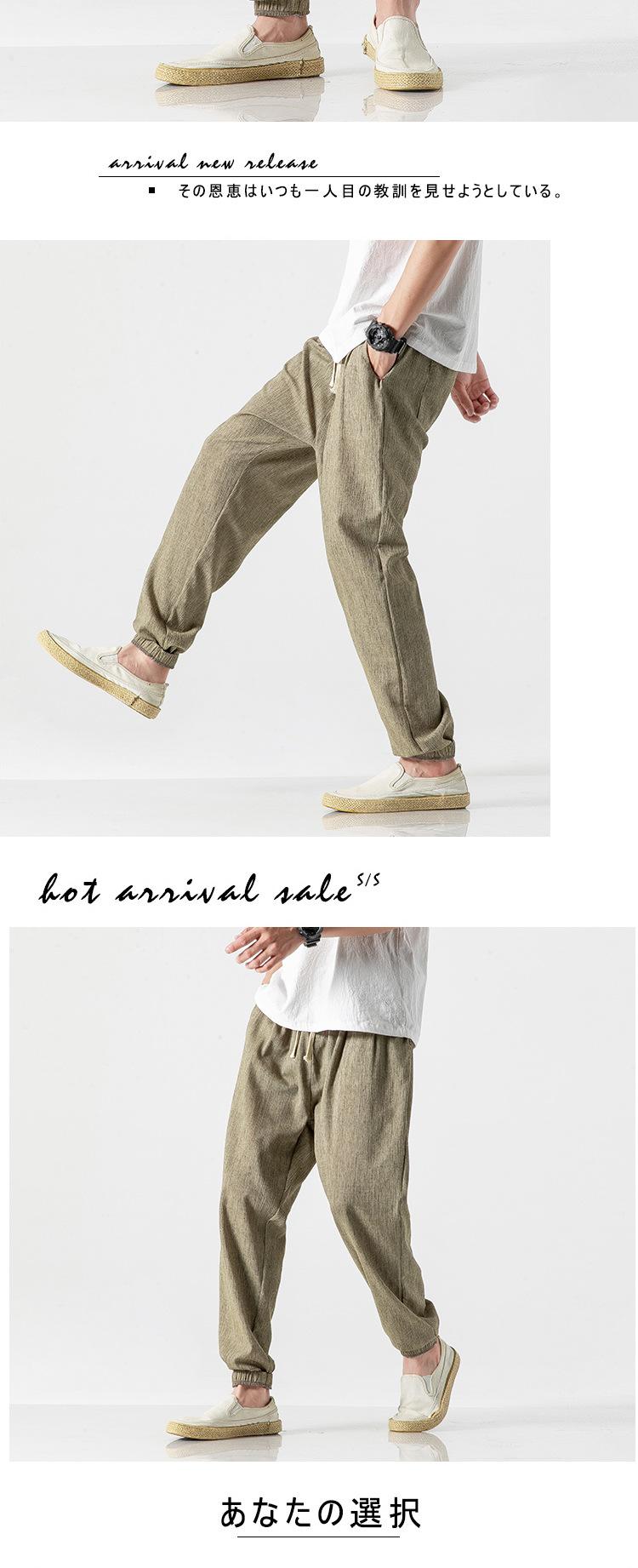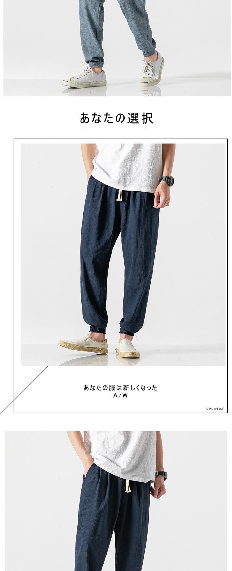 Pantalones de Tobillo de Algodón y Lino para Hombre de Comercio Exterior Transfronterizo Verano Talla Grande Estilo Chino Japonés Bombachos Delgados Pantalones de Lino para Hombre