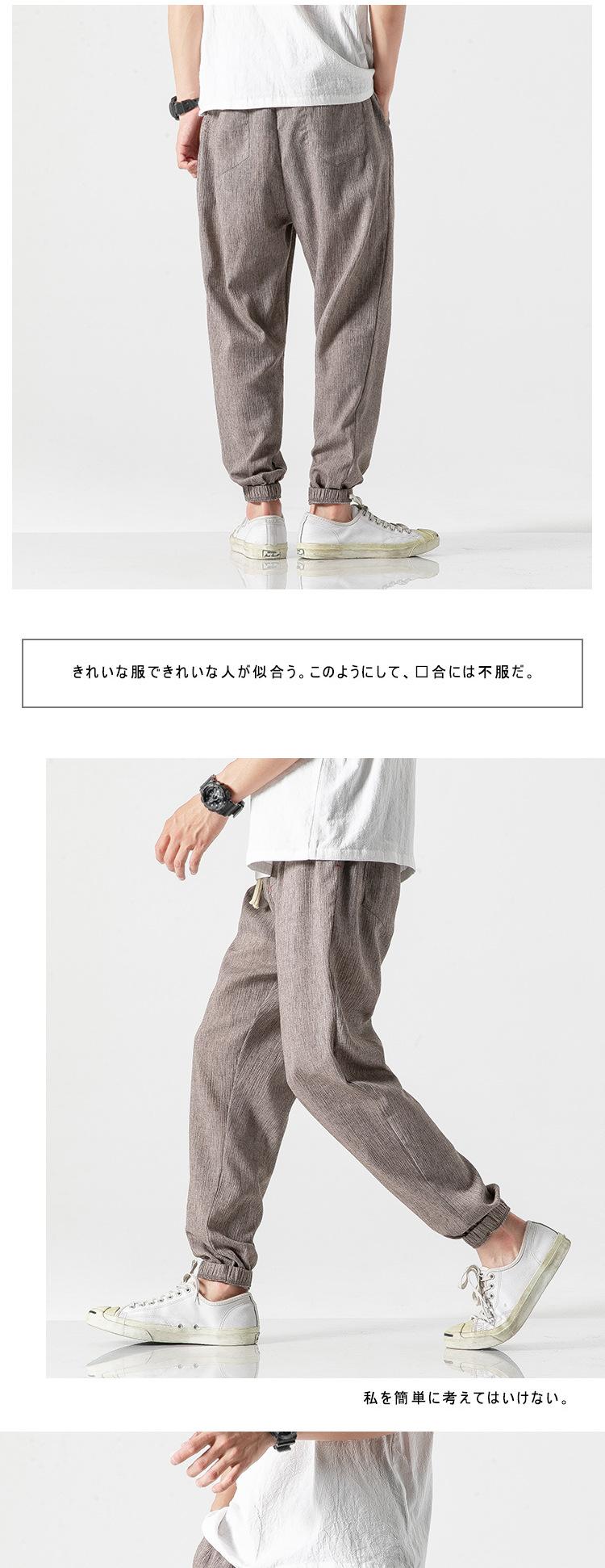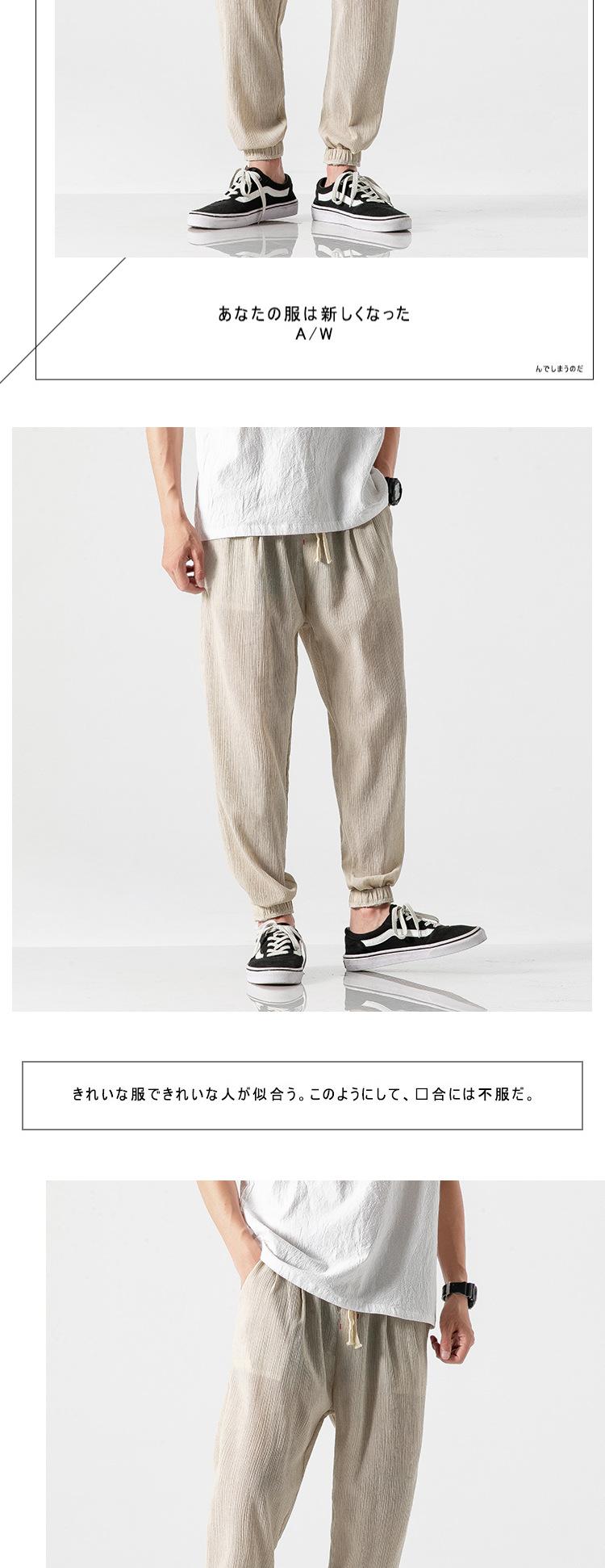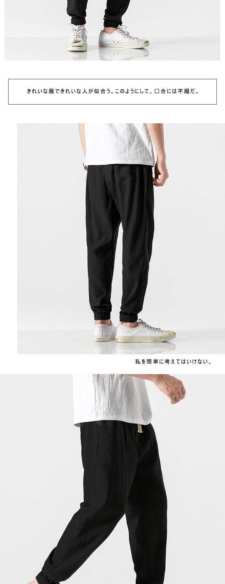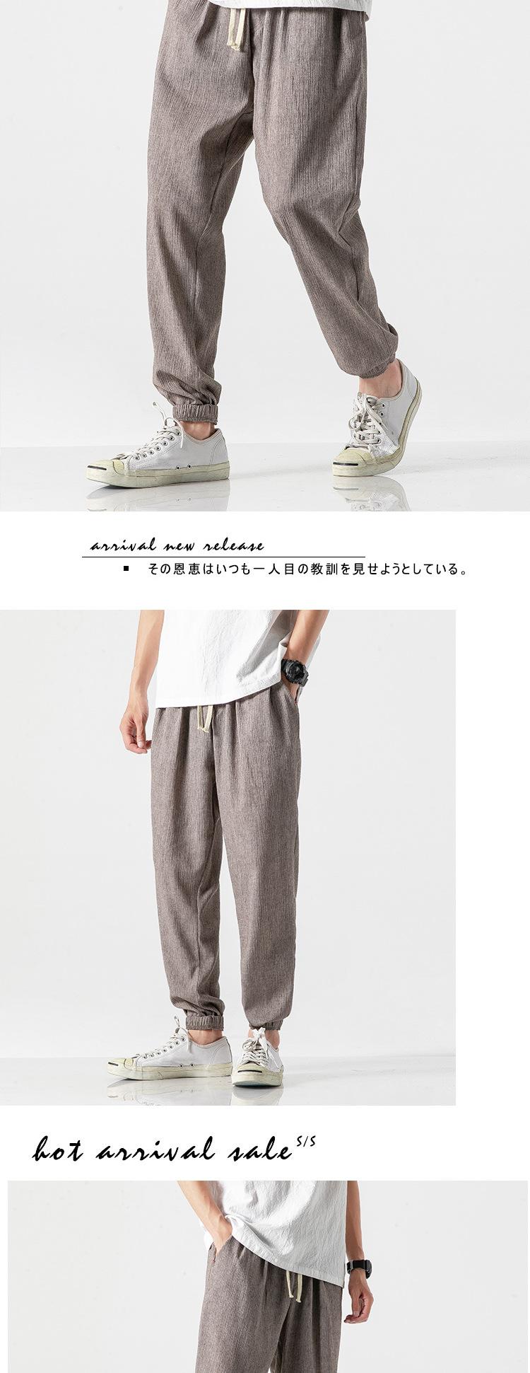 Pantalones de Tobillo de Algodón y Lino para Hombre de Comercio Exterior Transfronterizo Verano Talla Grande Estilo Chino Japonés Bombachos Delgados Pantalones de Lino para Hombre