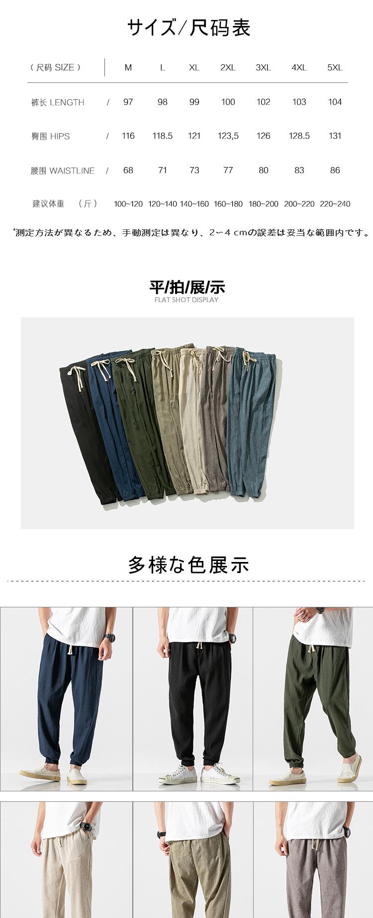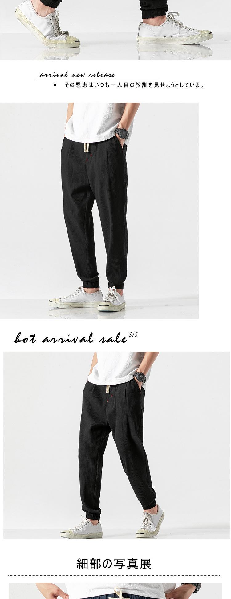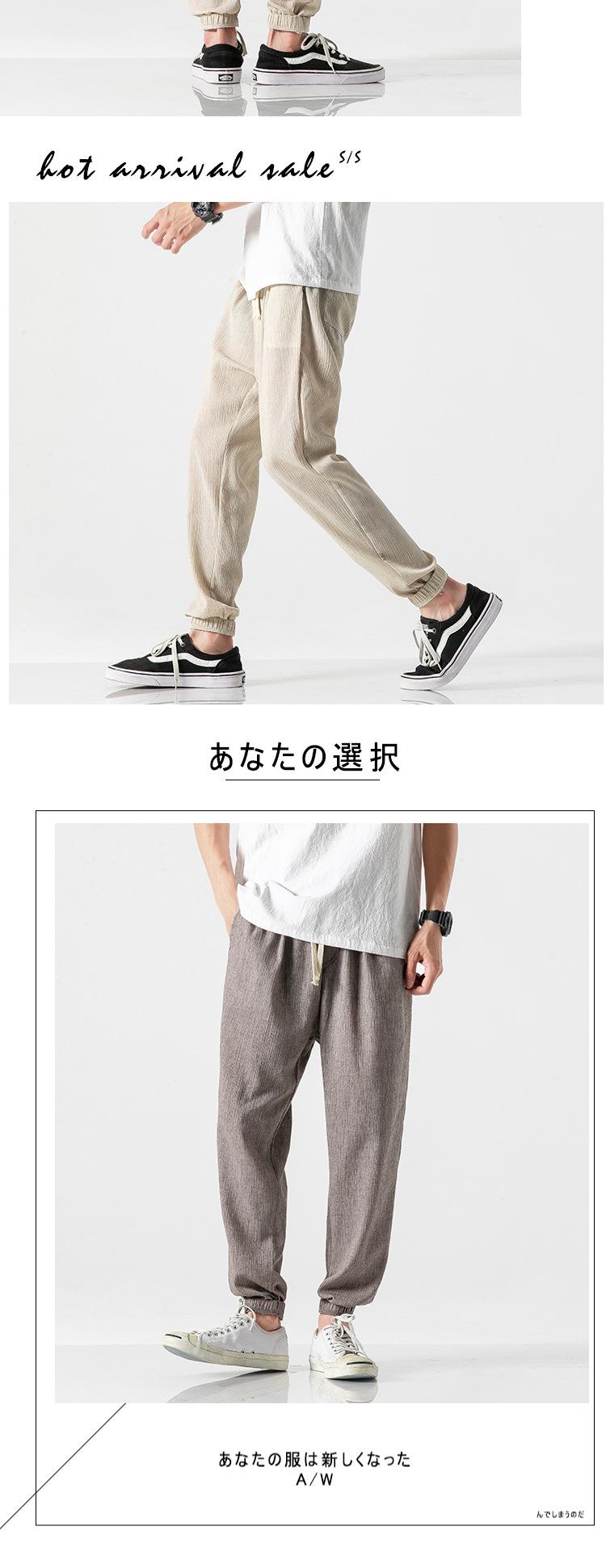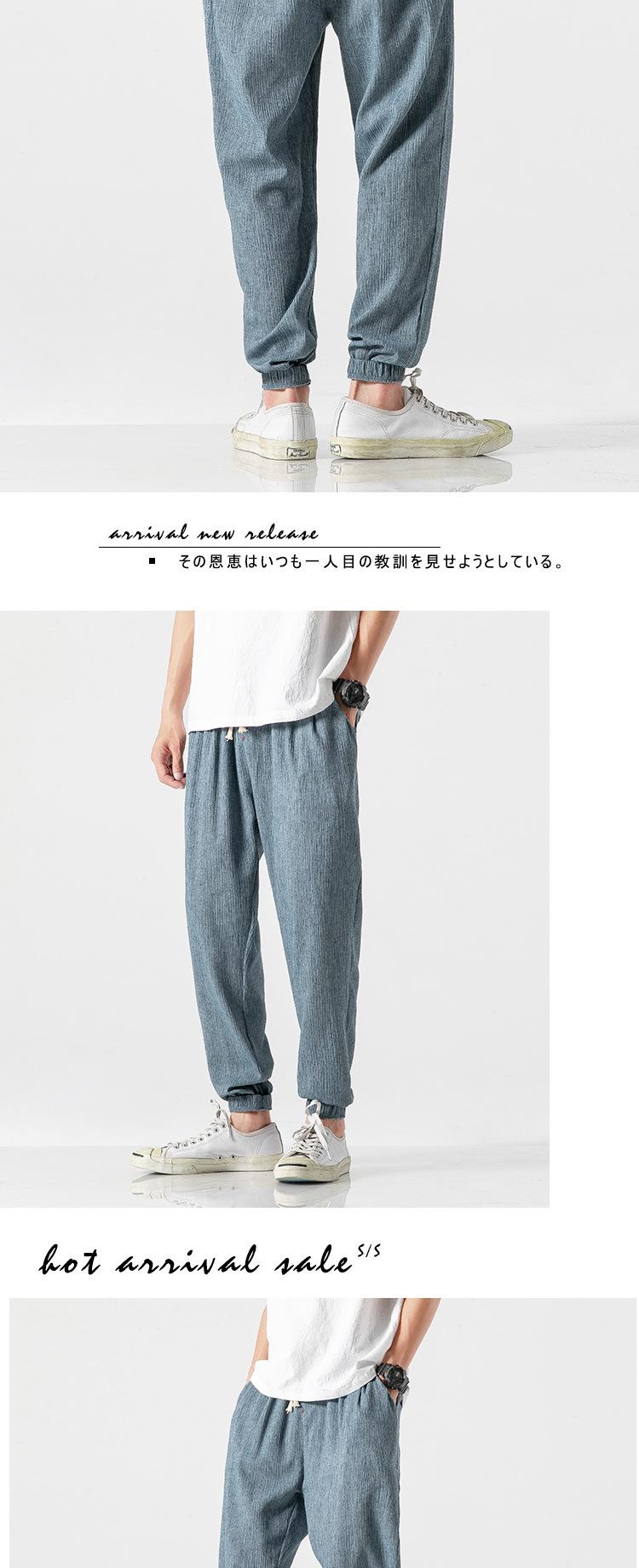 Pantalones de Tobillo de Algodón y Lino para Hombre de Comercio Exterior Transfronterizo Verano Talla Grande Estilo Chino Japonés Bombachos Delgados Pantalones de Lino para Hombre