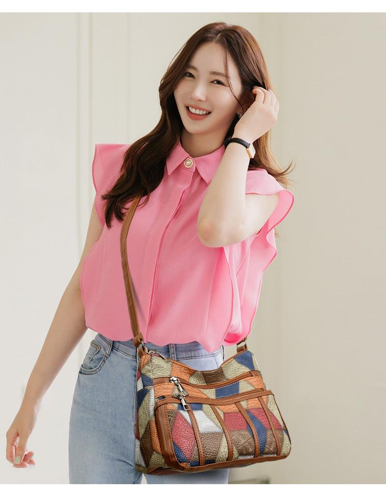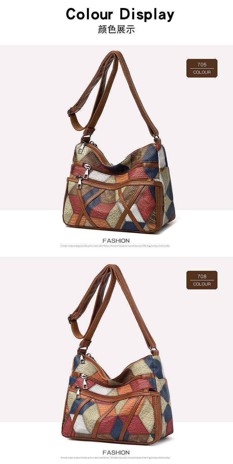 Bolso de mano para mujer de mediana edad, de gran capacidad, con costuras, para el trabajo, de piel suave, con múltiples bolsillos, bandolera vintage.