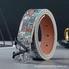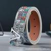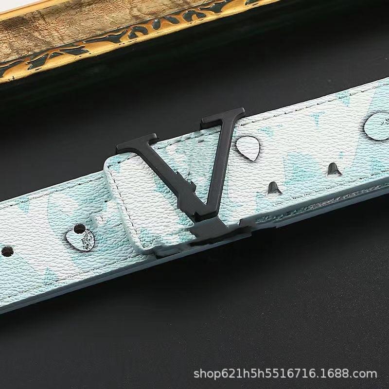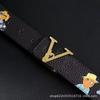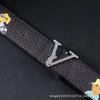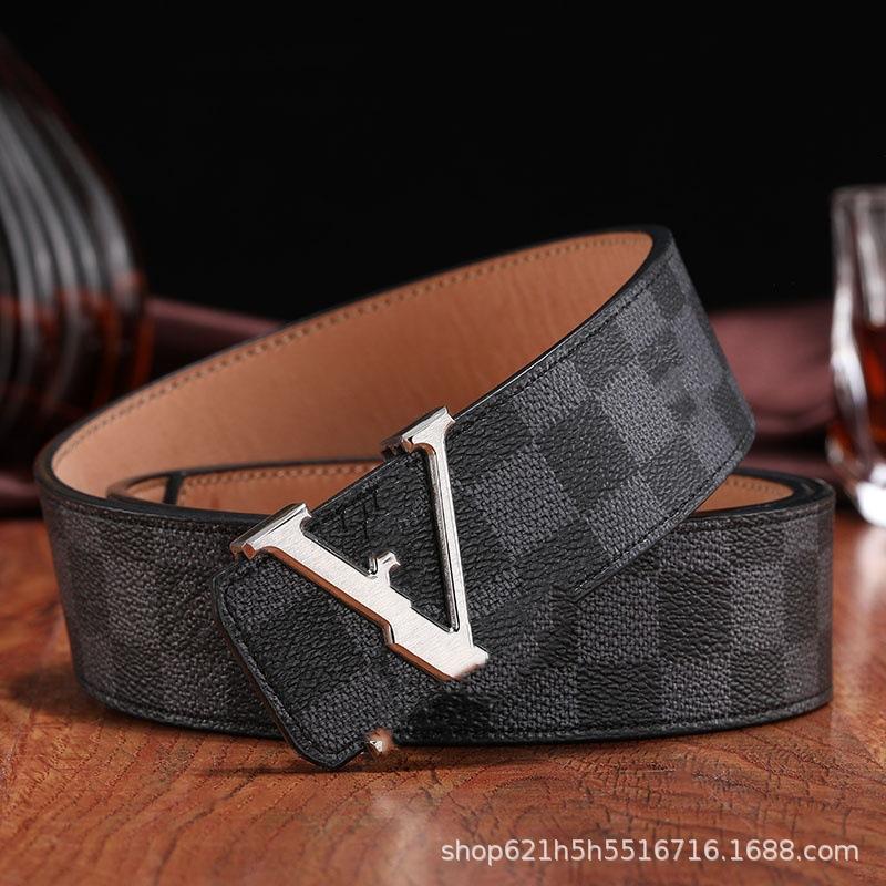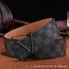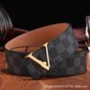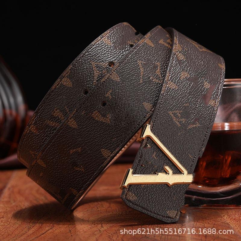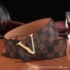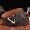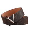 Cinturón Clásico para Hombre Café Flor Hebilla Dorada Flor Negra Hebilla Negra Cuero Genuino Piel de Vaca Cinturón de Negocios Cinturón con Hebilla Letra V de Alto Valor