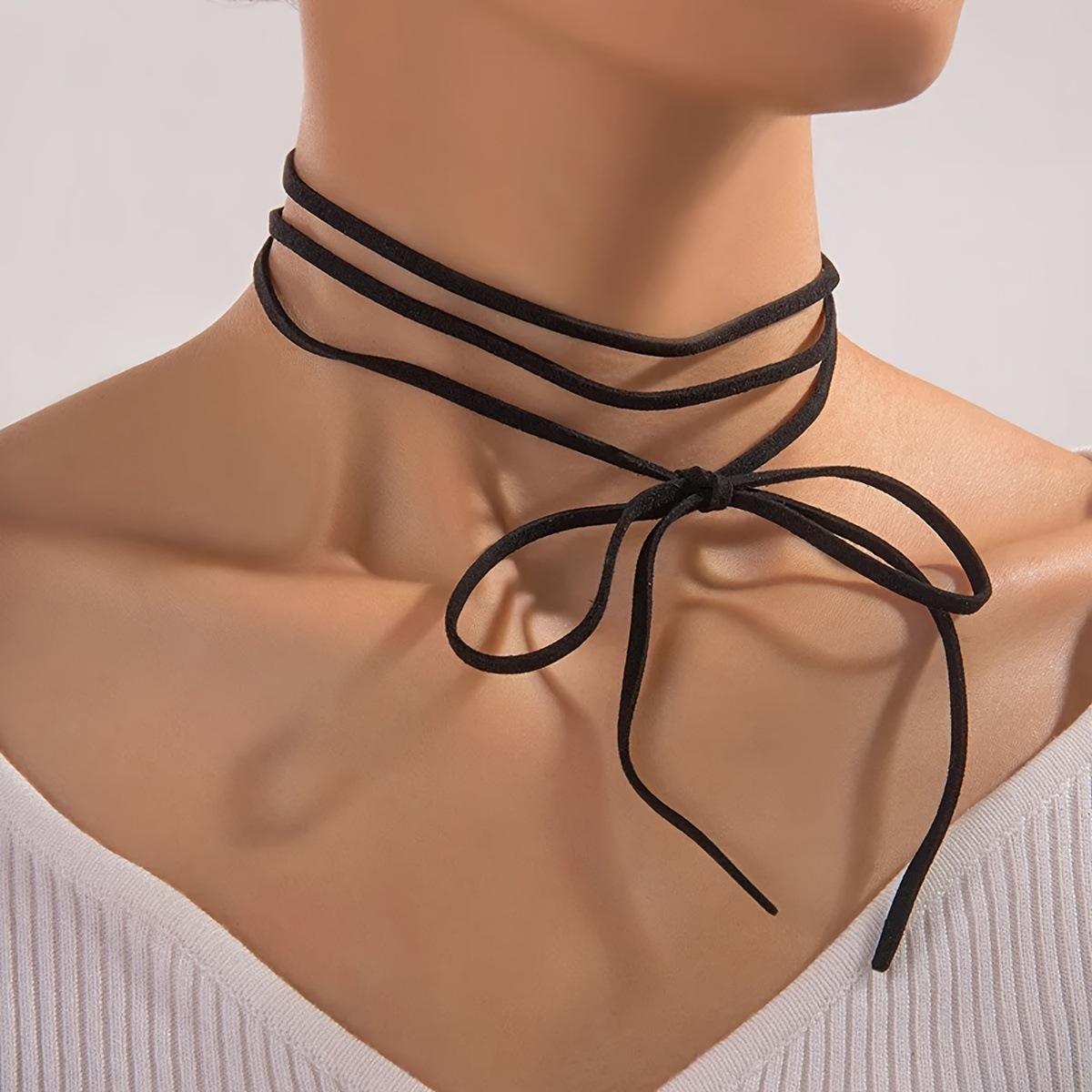 Collar con lazo de terciopelo negro, sencillo, elegante, con personalidad, joyería de moda, collar largo para el cuerpo.