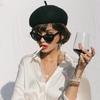 Boina retro de venta caliente transfronteriza para otoño e invierno, gorro de pintor grueso de lana artística japonesa para mujer, gorro de moda de lana.