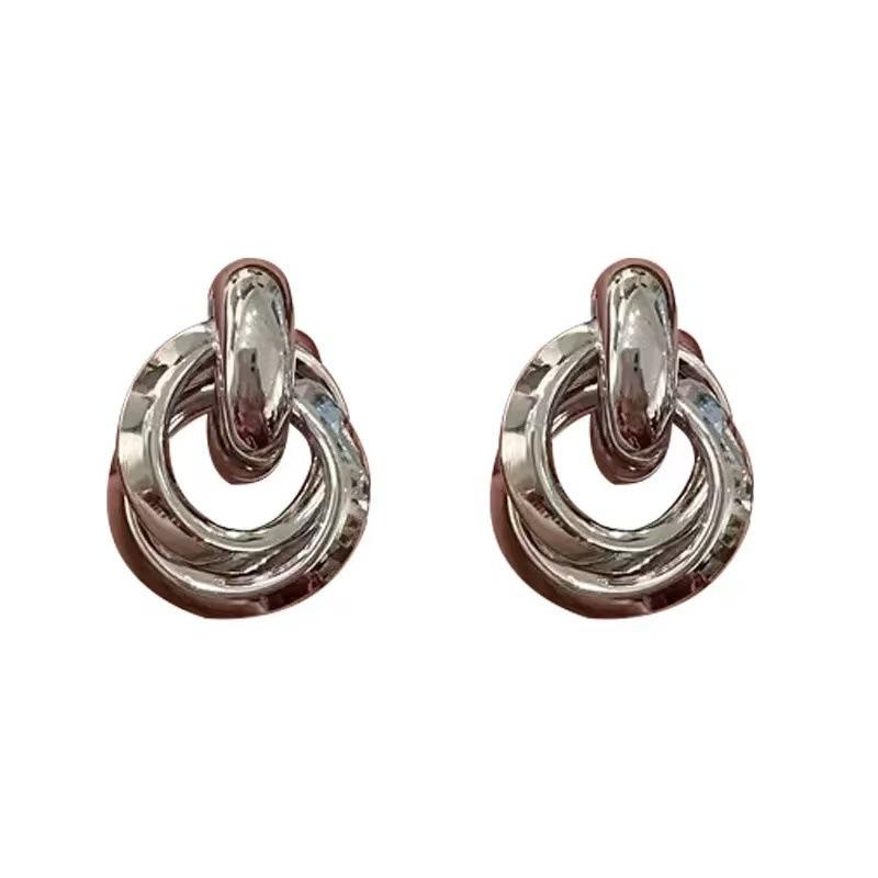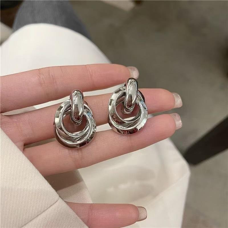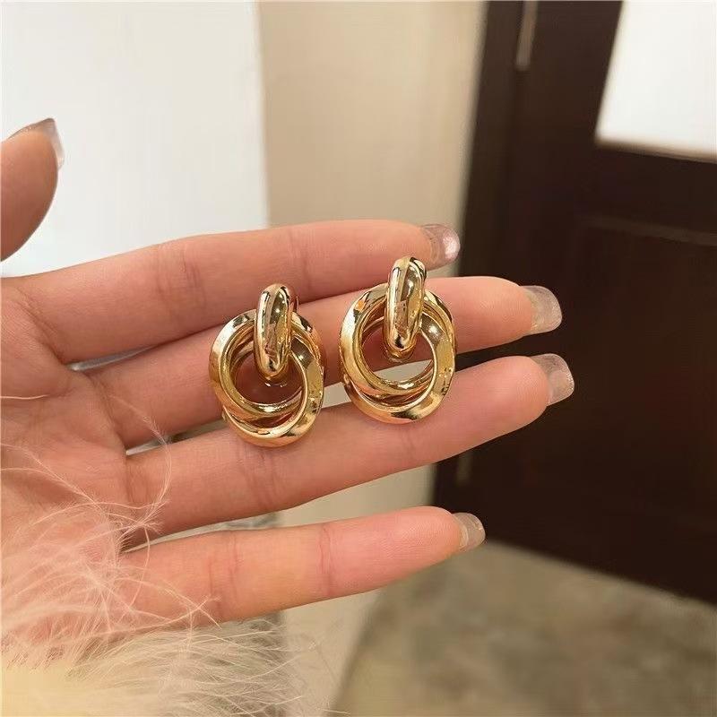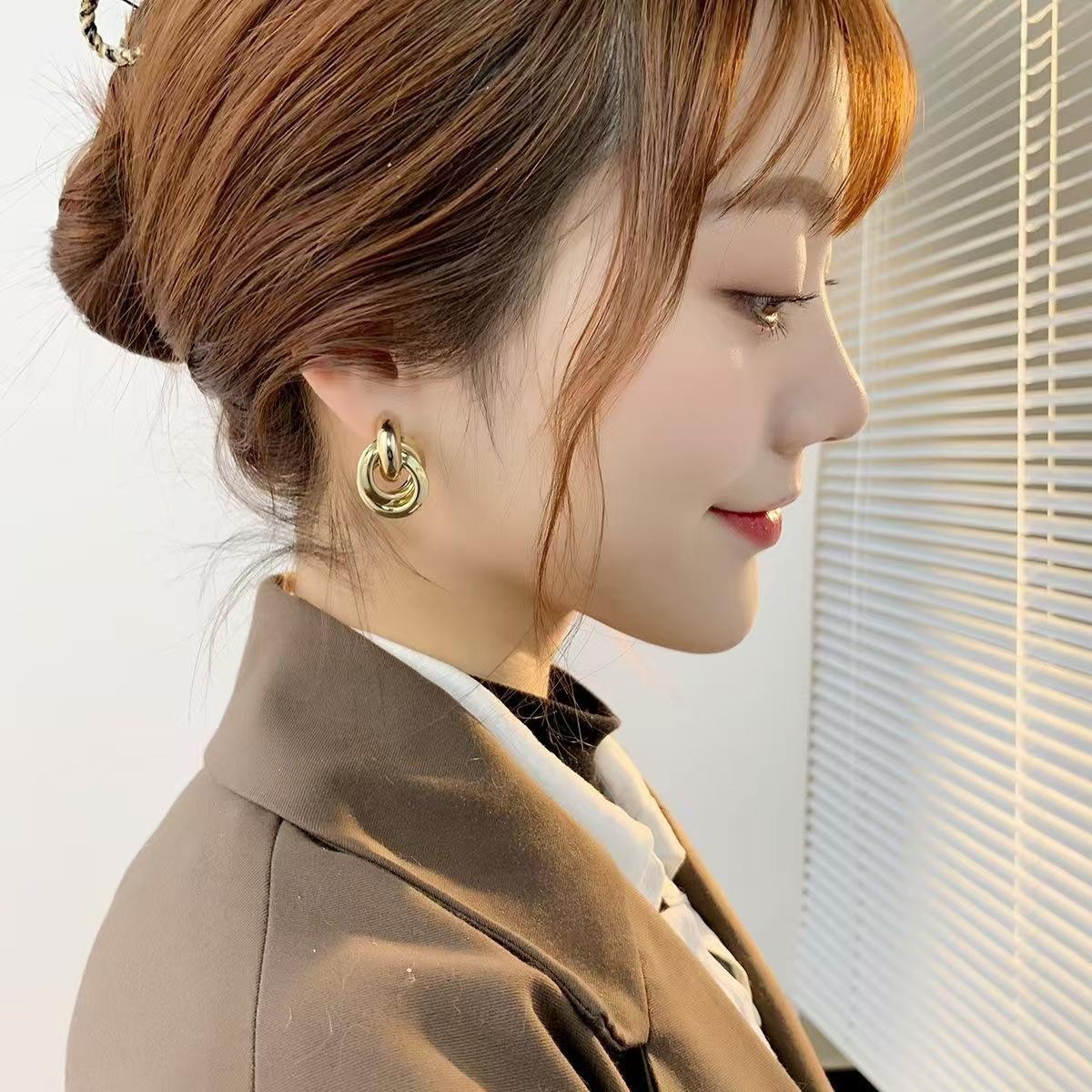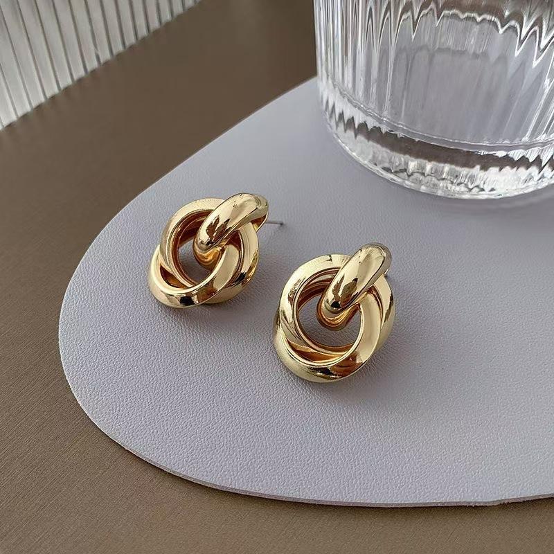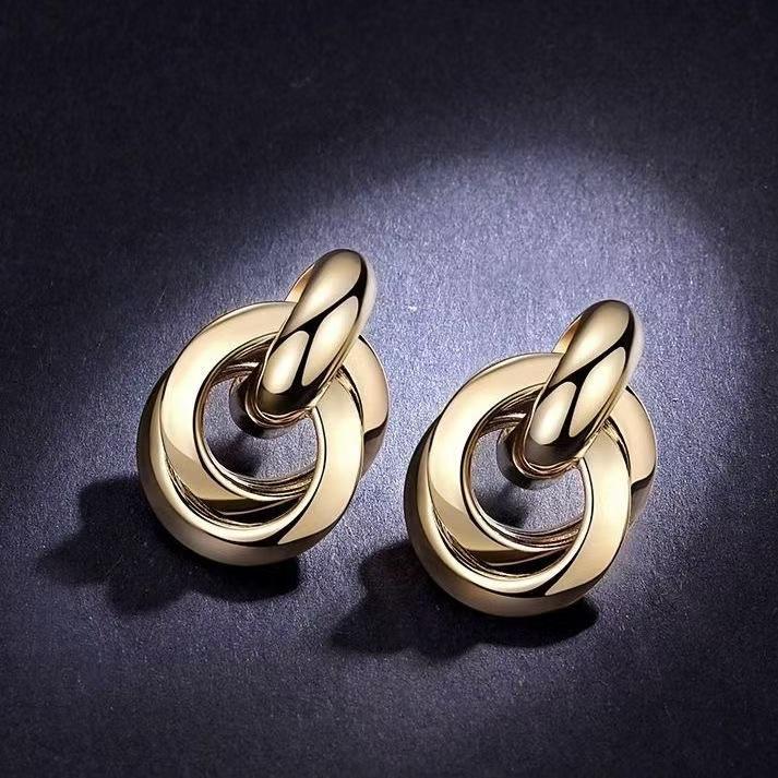 Compra Pendientes de metal con diseño de nicho europeo y americano, elegantes, retro, geométricos, con círculos texturizados, pendientes franceses. al por mayor en Joom.pro