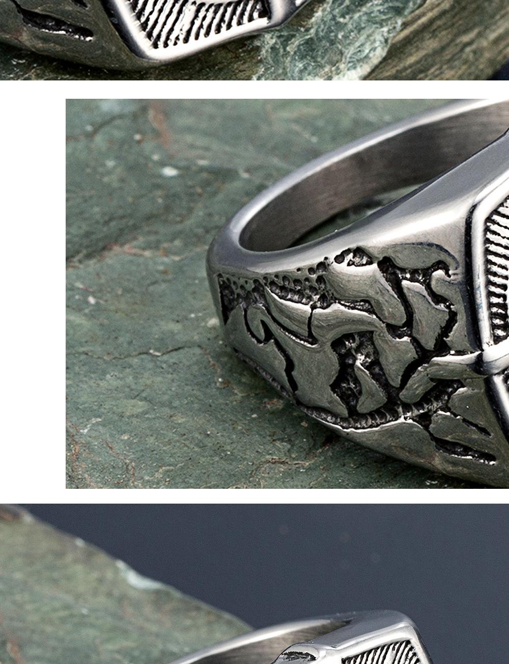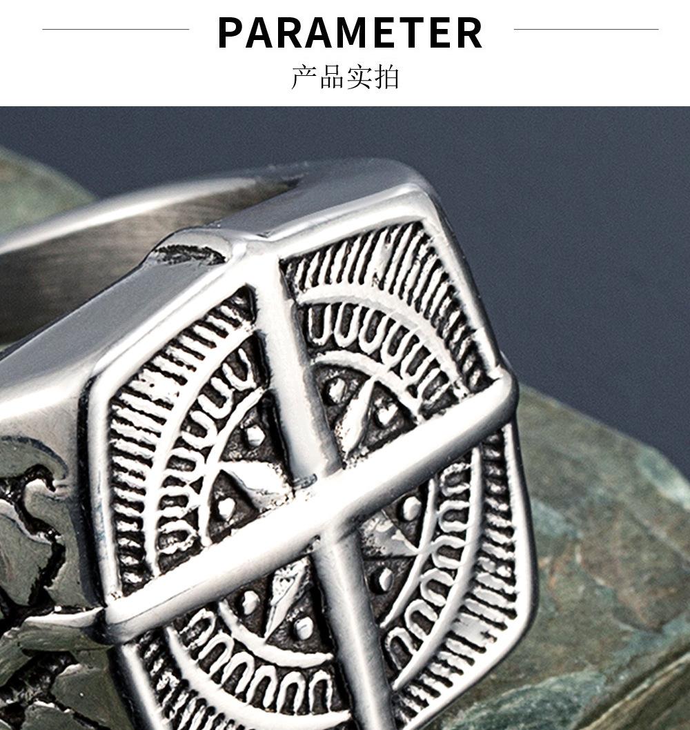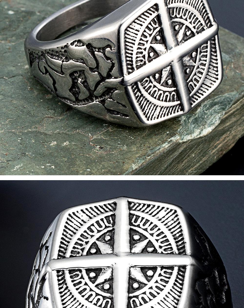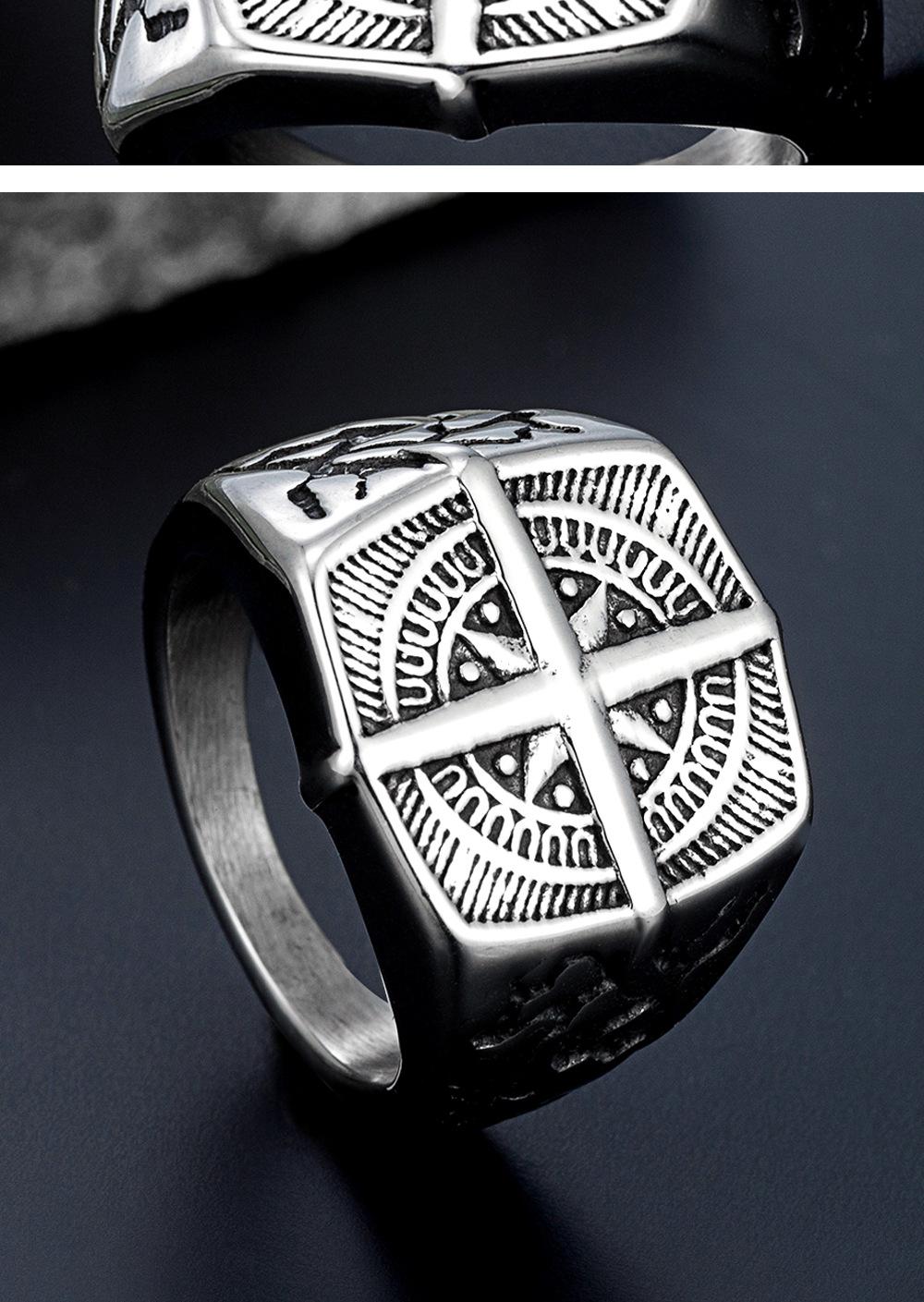Anillo Europeo y Americano de Acero Inoxidable de Venta Caliente Personalizado Vintage Cruz Brújula para Hombre Acero Titanio Hip Hop Punk Nórdico
