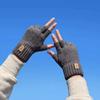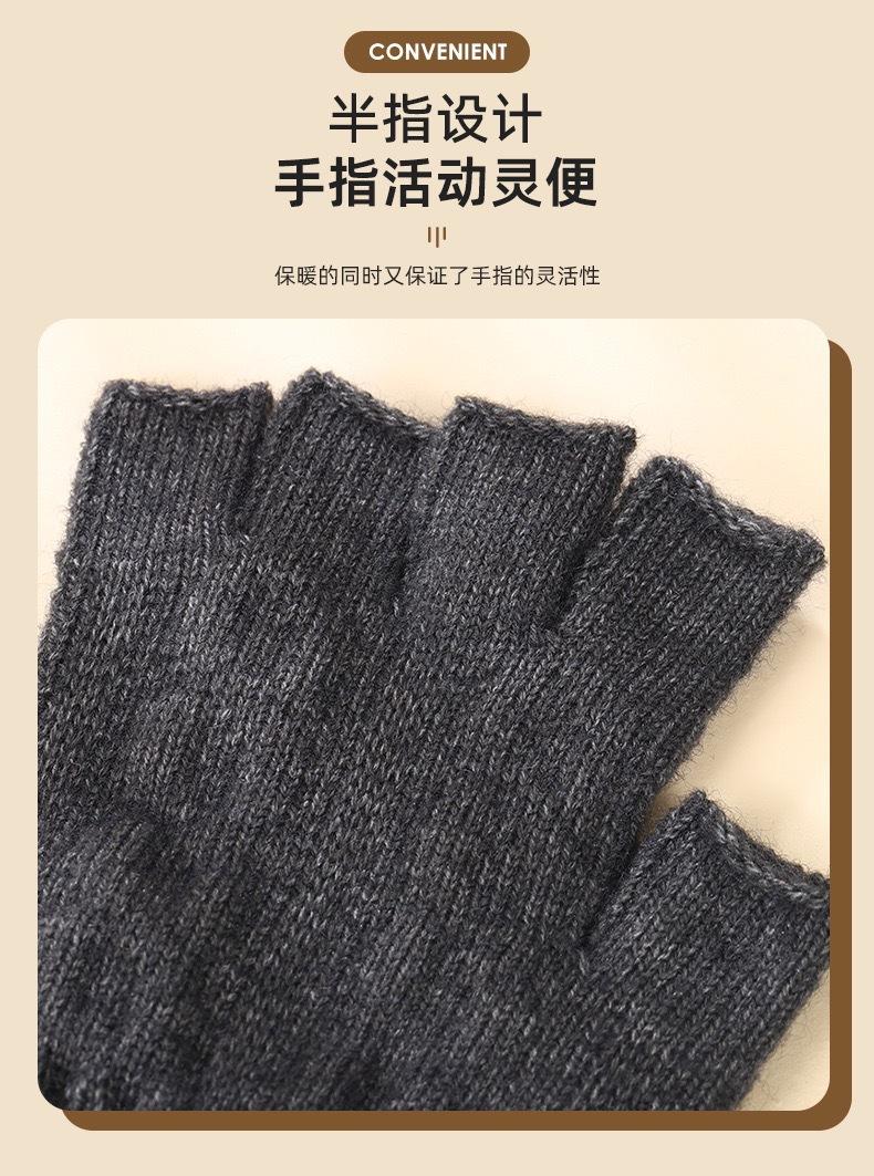 Guantes de Medio Dedo para Hombre, de Dedos, Invierno, Medio Sin Dedos, para Montar, Conducir, Tejido de Lana Gruesa, de Dedos, a Prueba de Frío y Mantenedor de Calor