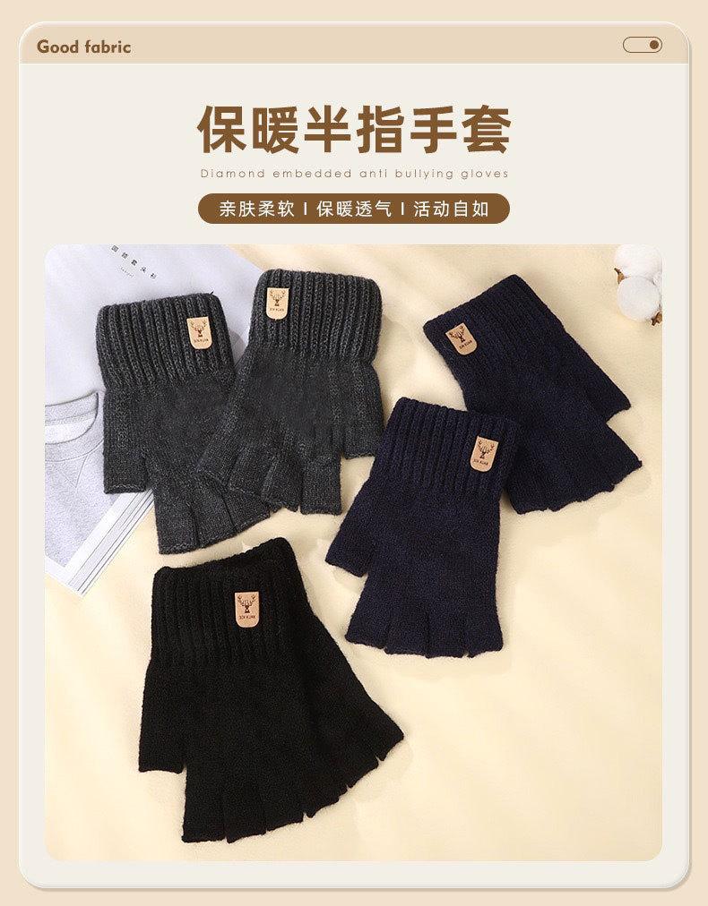 F012-deer logo fingerless gloves-navy blue, F012-deer label fingerless gloves--black, F012-deer logo fingerles...