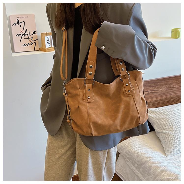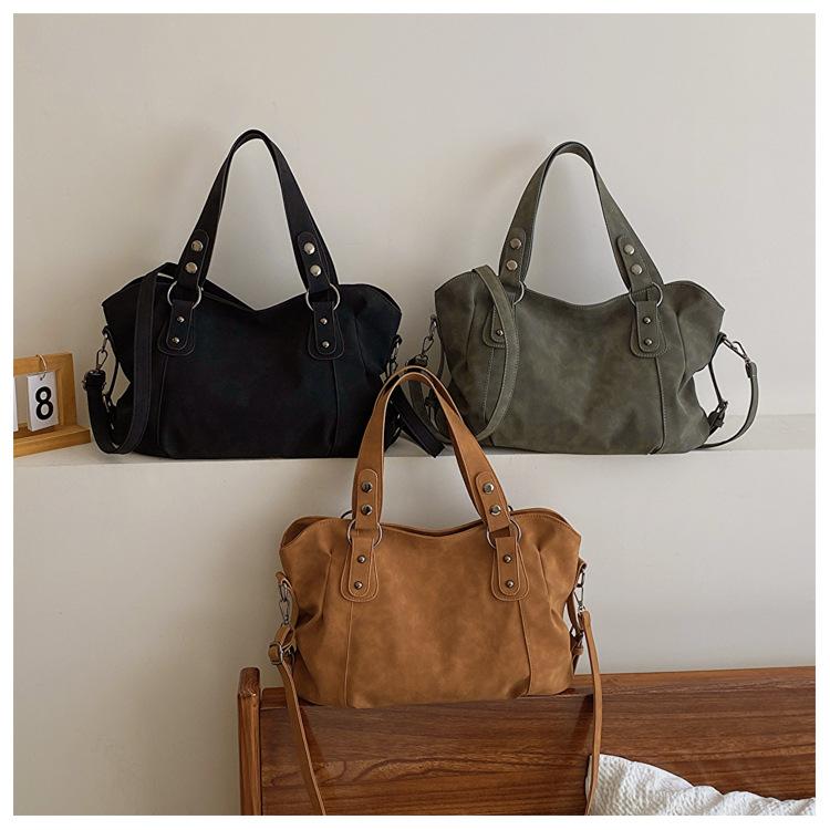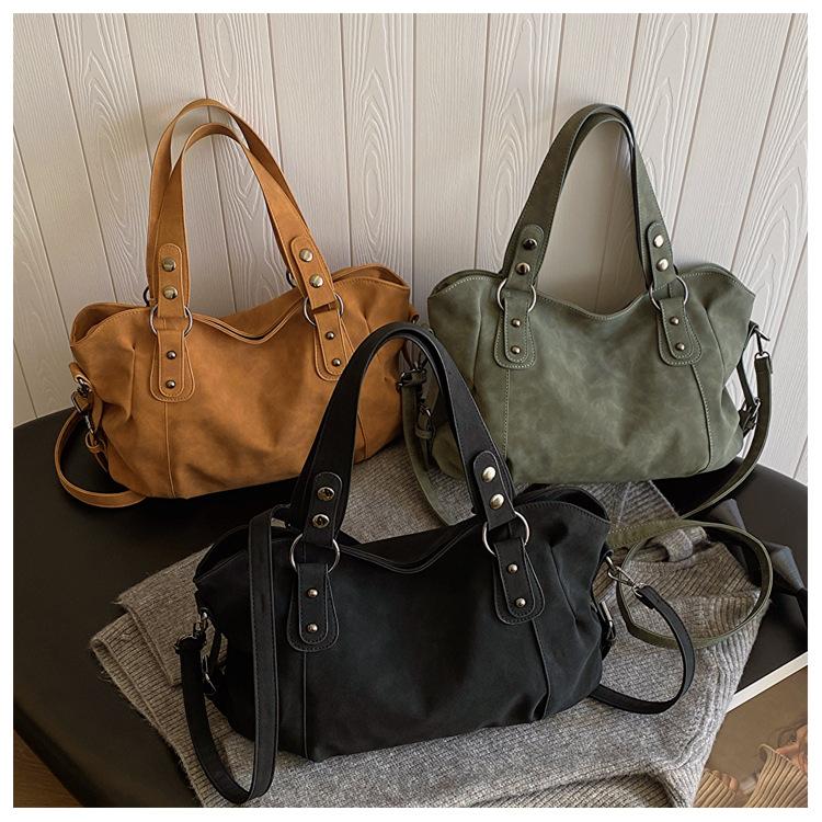 Bolso Vintage de Gran Capacidad para Mujer 2024 Nueva Moda Bolso Tote Esmerilado Estudiante Clase Viajero Hombro Bandolera