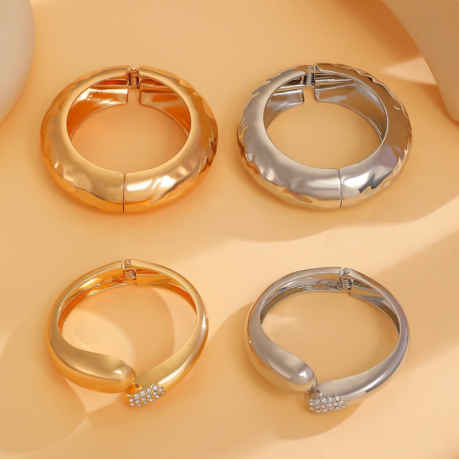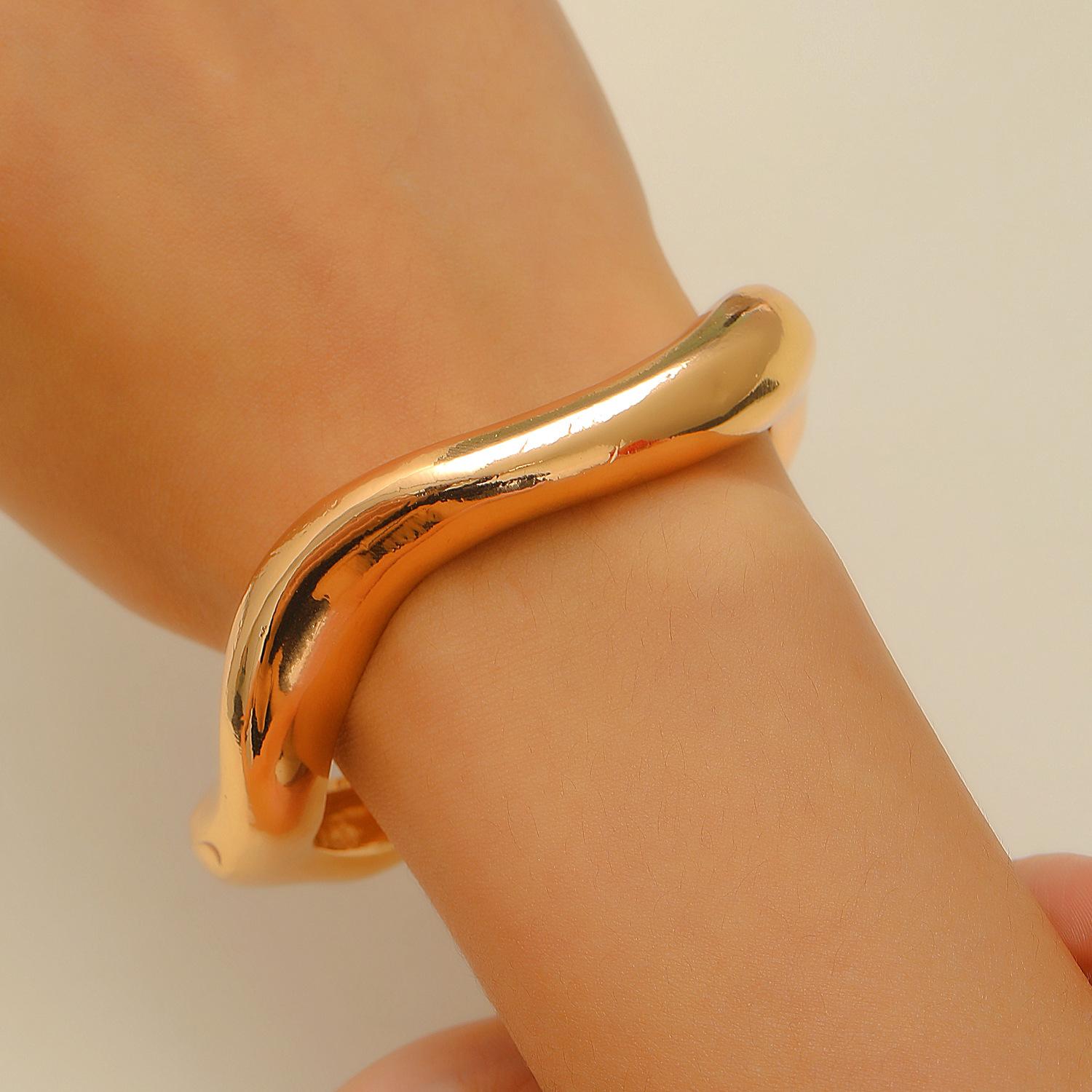 Pulsera Transfronteriza Europea y Americana Retro Personalidad Exagerada para Cara Ancha Traje Pulsera Irregular con Brillo Dorado Pulsera Calada para Mujer