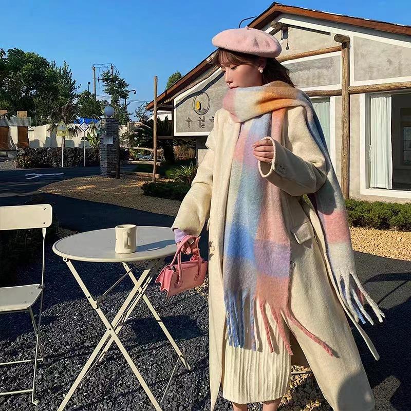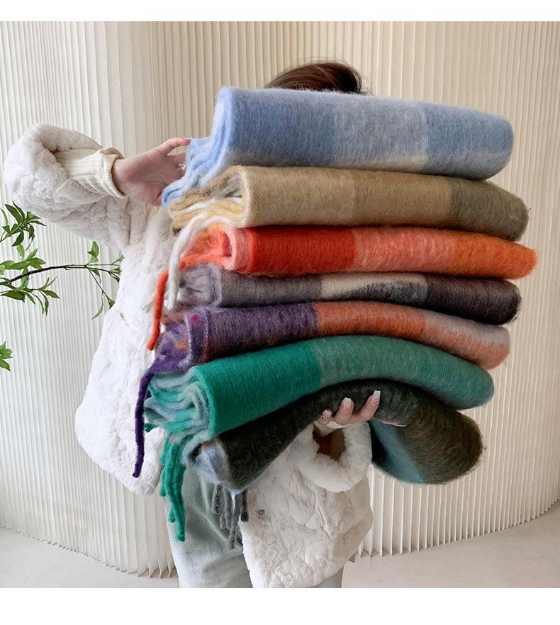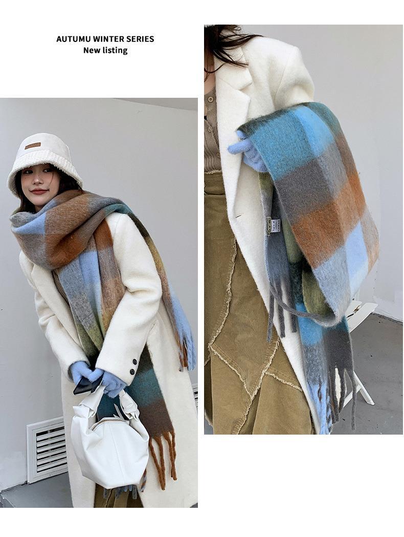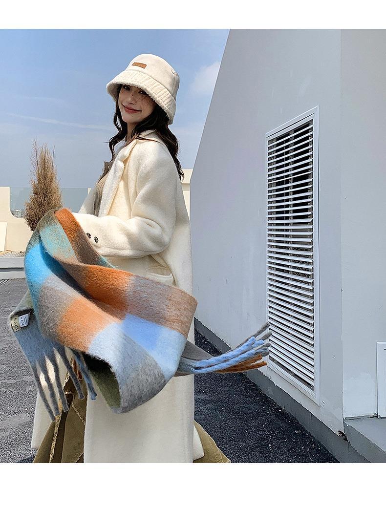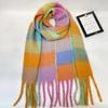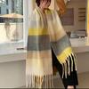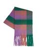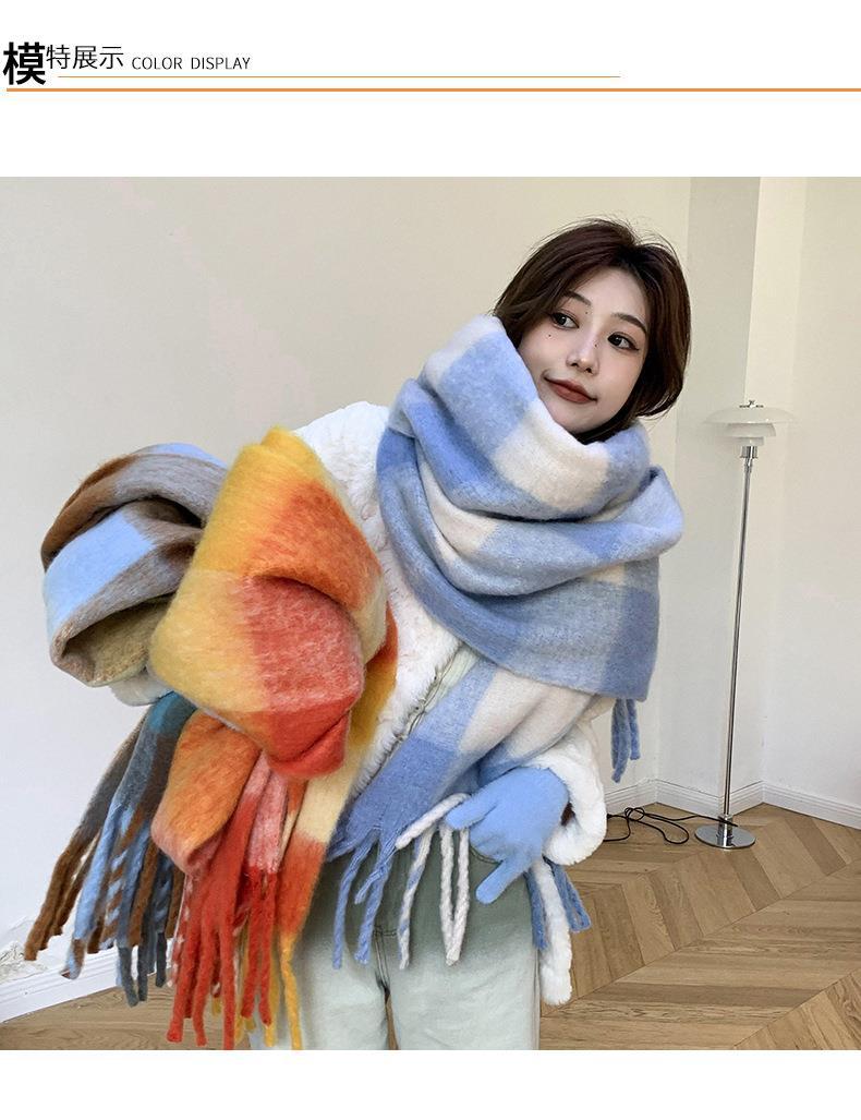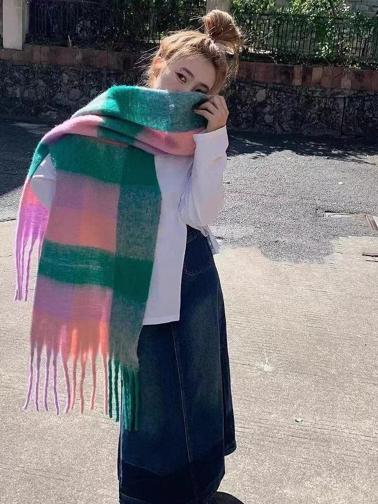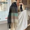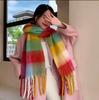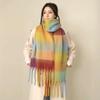 Bufanda con borlas a cuadros de arcoíris para mujer, otoño e invierno, chal de mohair de cachemira a juego de colores famosos de Europa y América, bufanda gruesa
