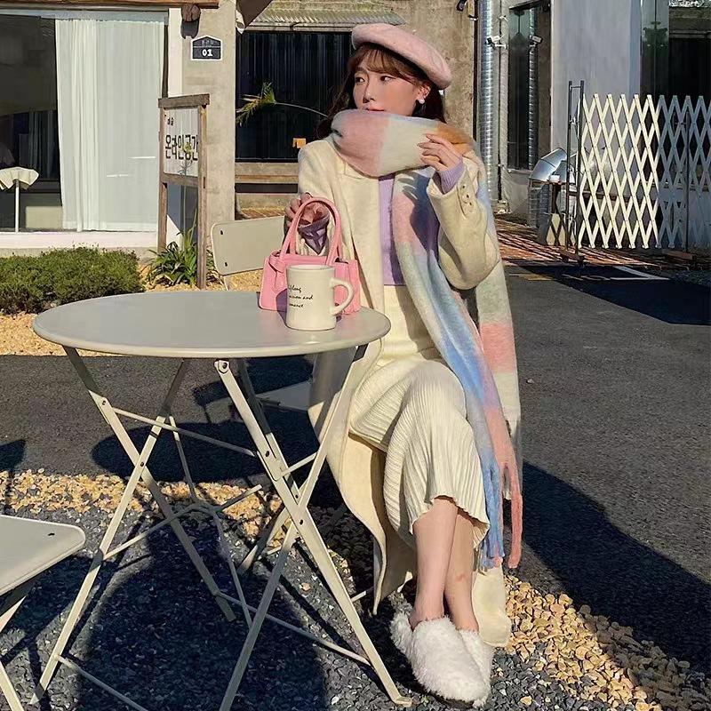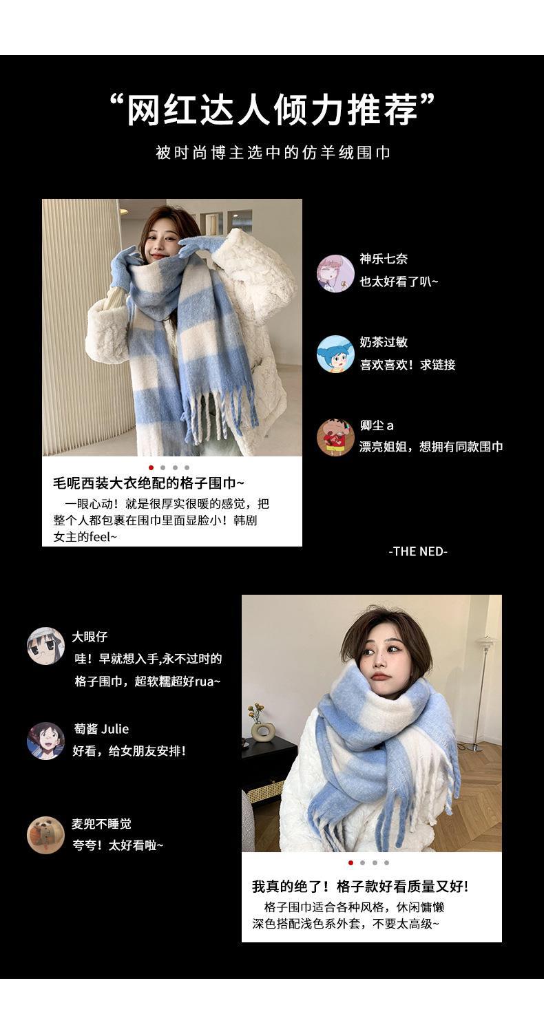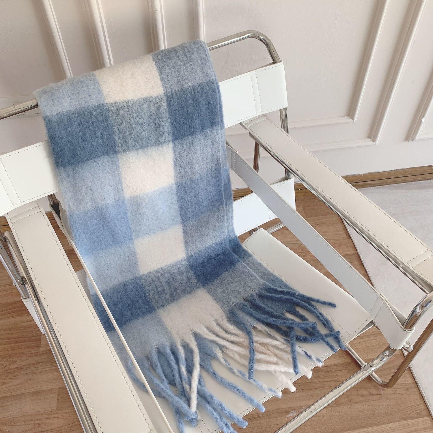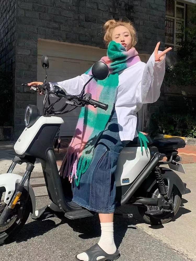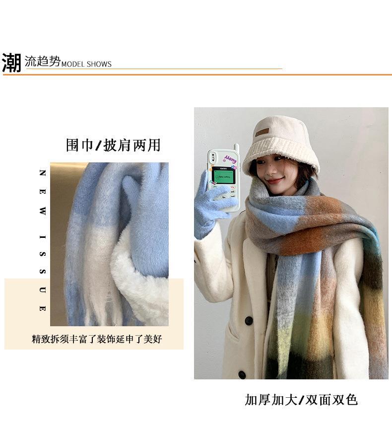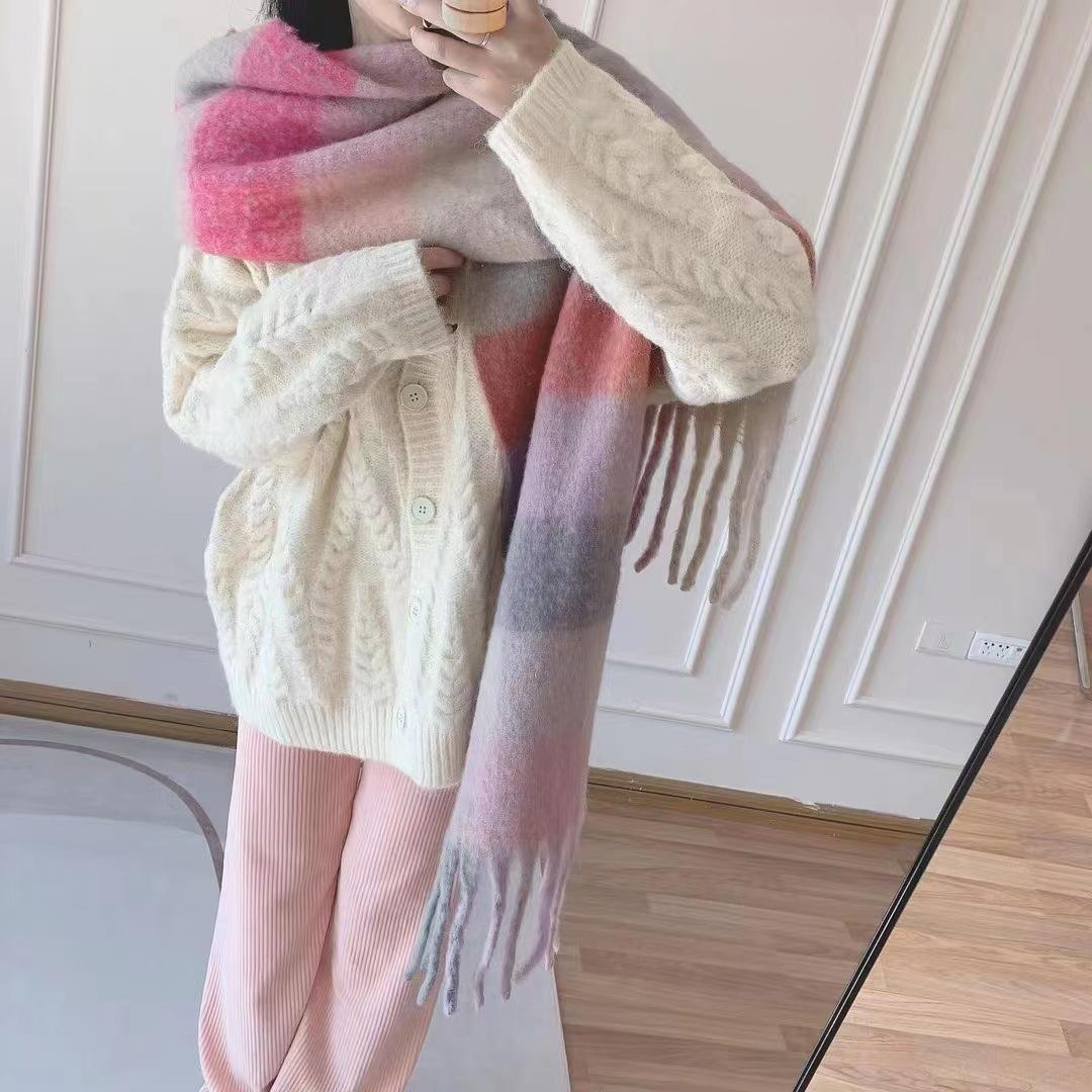Bufanda con borlas a cuadros de arcoíris para mujer, otoño e invierno, chal de mohair de cachemira a juego de colores famosos de Europa y América, bufanda gruesa