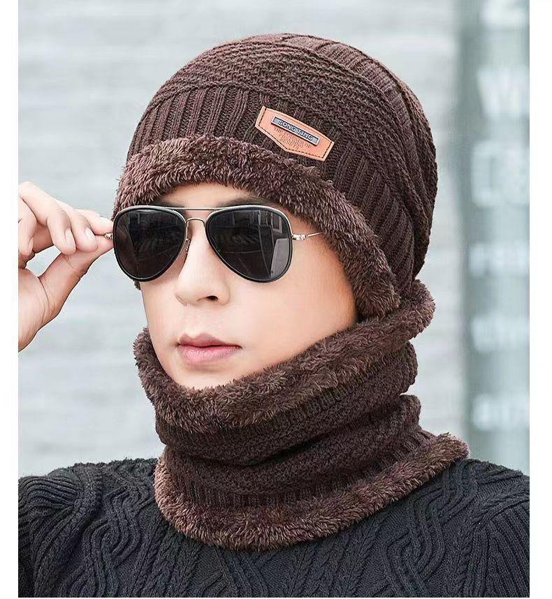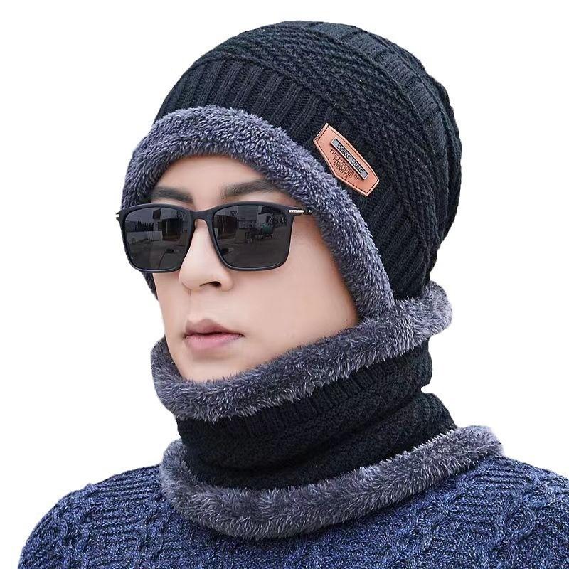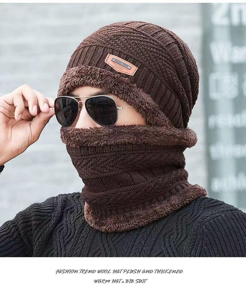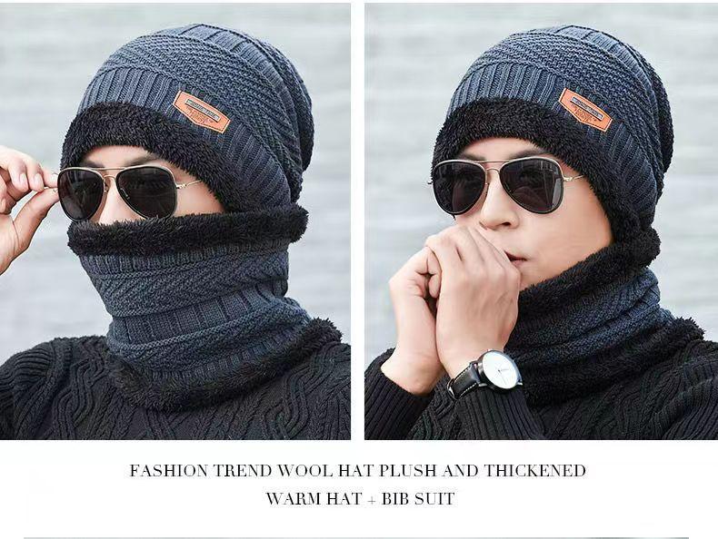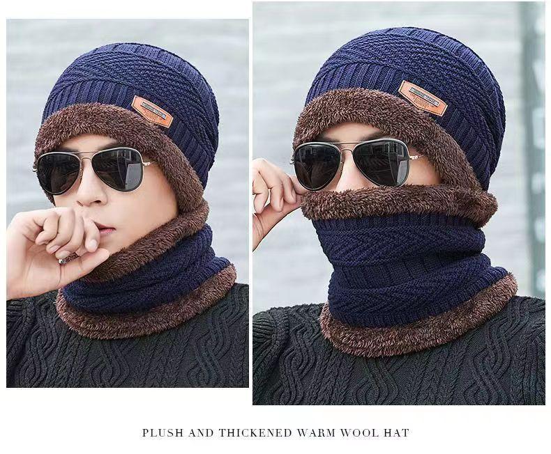 Gorro de lana de punto para hombre, forro polar, grueso, estilo coreano, moderno, cálido, resistente al frío, para ciclismo, otoño e invierno, de algodón.