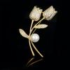 Broche de tulipán con diamantes de imitación de estilo coreano, nuevo, con perlas y diamantes de imitación, broche de flores de alta gama para mujer, joyería a juego.