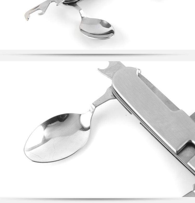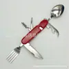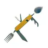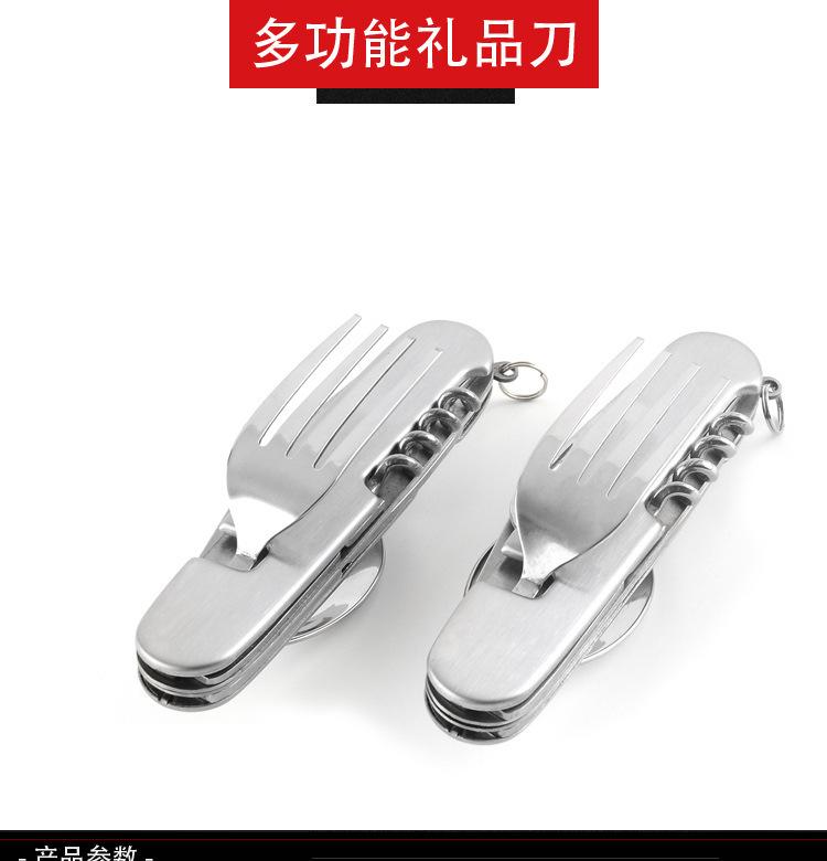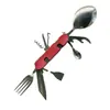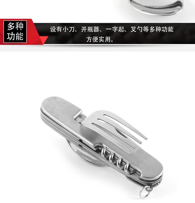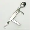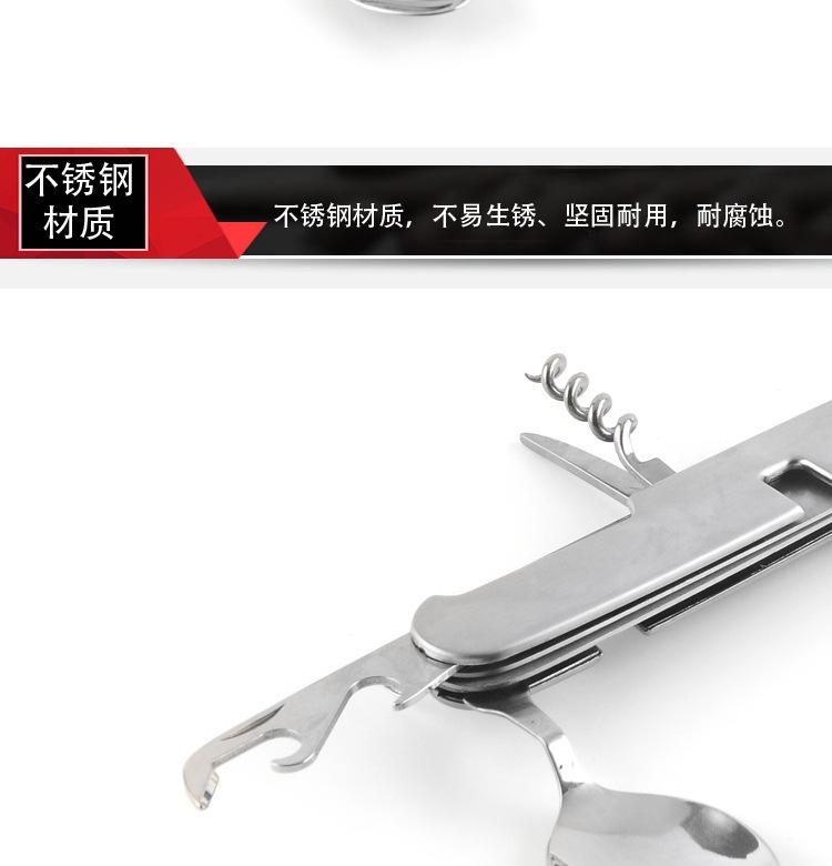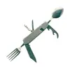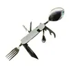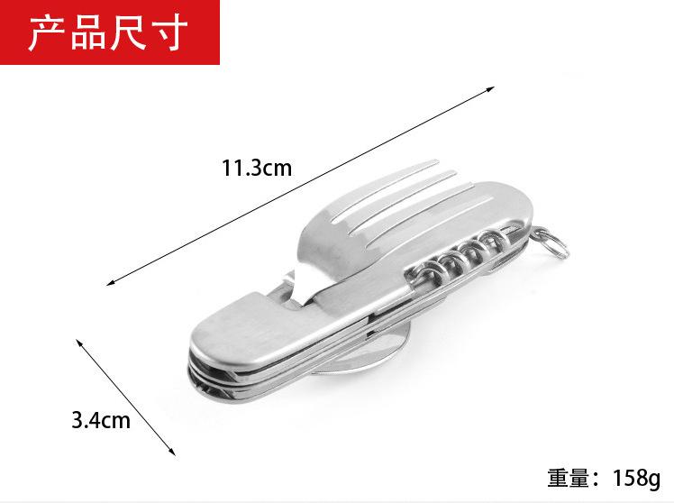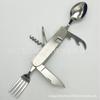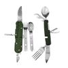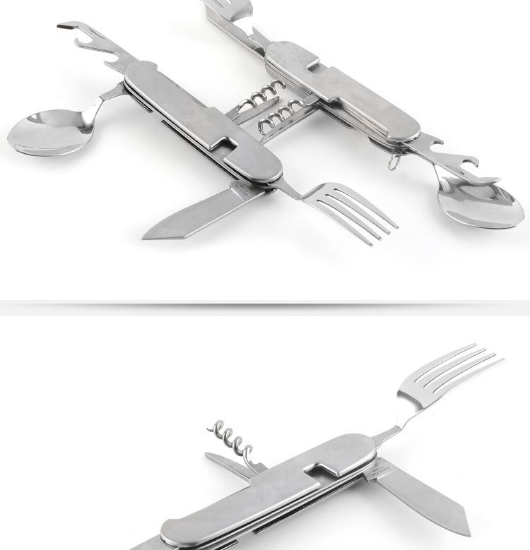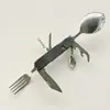 Cuchillo de mesa multifuncional acero inoxidable portátil desmontable camping cuchillo plegable tenedor cuchara exterior multifuncional 6-abridor cuchillo plegable
