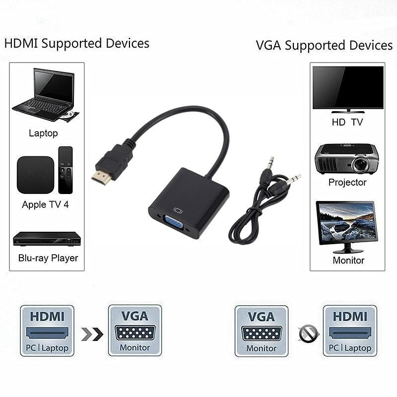 Cable HDMI a VGA HD con un nuevo chip de conversión digital IC original, la señal HDMI a señal VGA, la señal no se reduce, zoom y cualquier otro procesamiento técnico, el éxito de su interfaz HDMI con su dispositivo, como una computadora portátil conectada a los monitores de interfaz VGA tradicionales, proyectores, televisores y más.