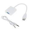 Este convertidor HDMI a VGA puede emitir señales VGA a pantallas CRT/LED y proyectores, etc. La señal HDMI de entrada se puede conectar a PS3, DVD Blu-ray, decodificador HD, etc. La salida VGA se puede conectar a pantallas CRT/LED, entrada VGA de TV HD, entrada VGA de proyector, etc., lo que puede resolver las preocupaciones temporales para los amigos que no tienen TV HD. (Tenga en cuenta que este convertidor solo puede convertir HDMI a VGA, no VGA a HDMI. VGA a HDMI es otro convertidor. Si lo necesita, ¡contáctenos!)