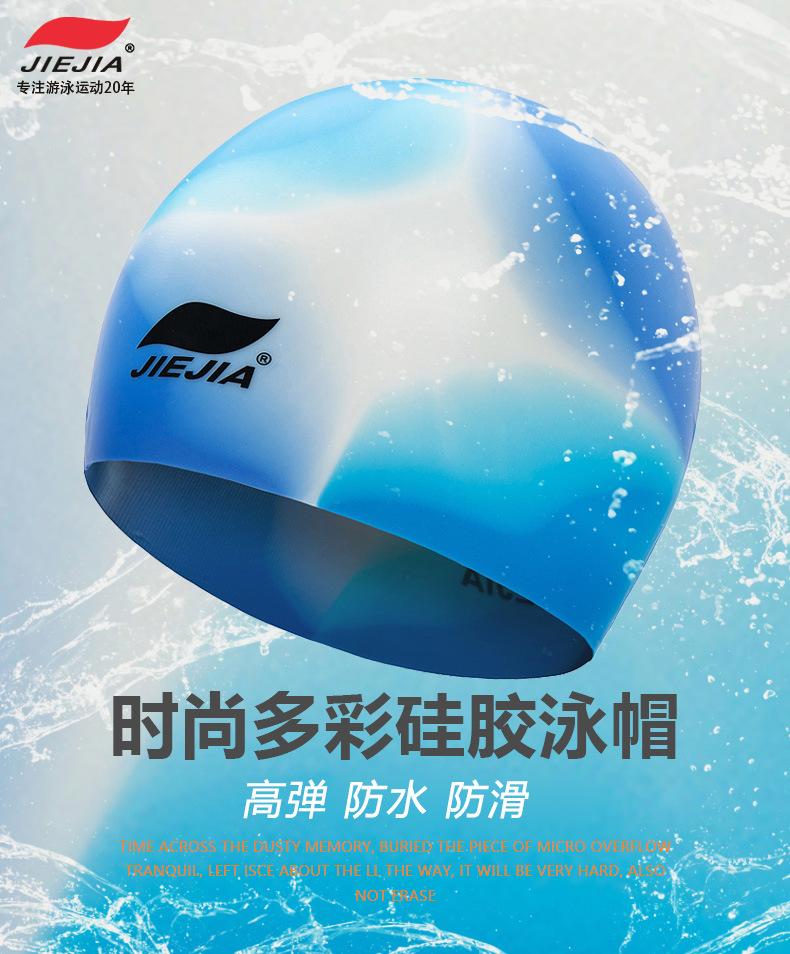 Gorro de natación Jiejia de silicona elástica resistente al agua, para cabello largo, para hombres y mujeres, para aguas termales, venta al por mayor, gorro de natación de entrenamiento MC