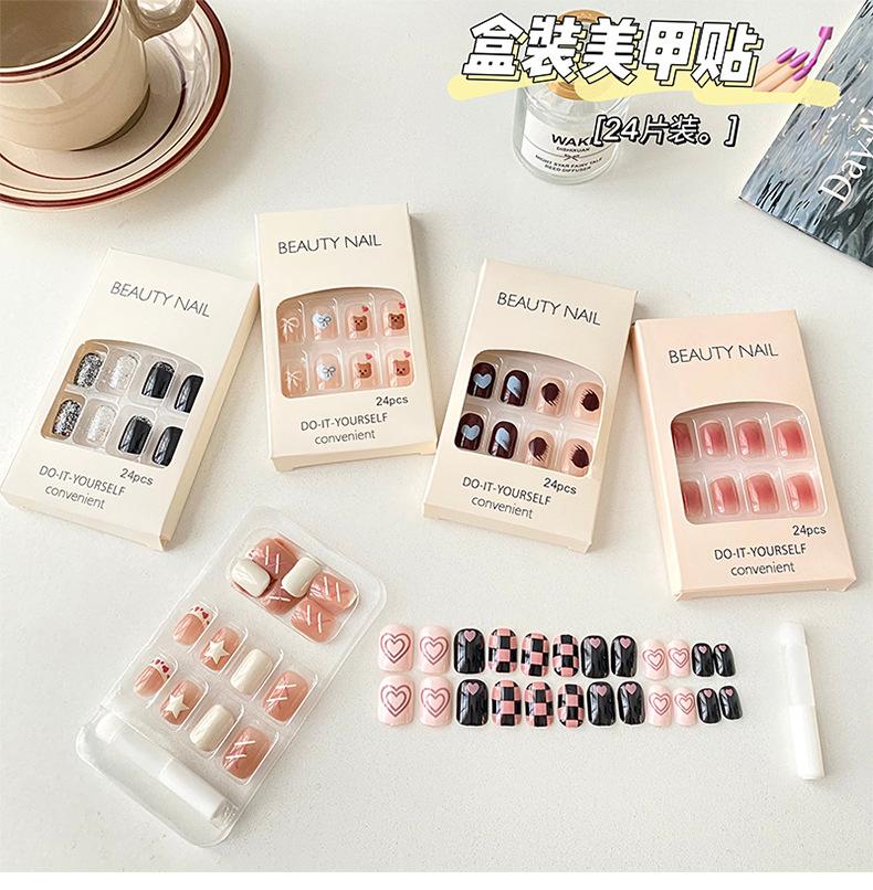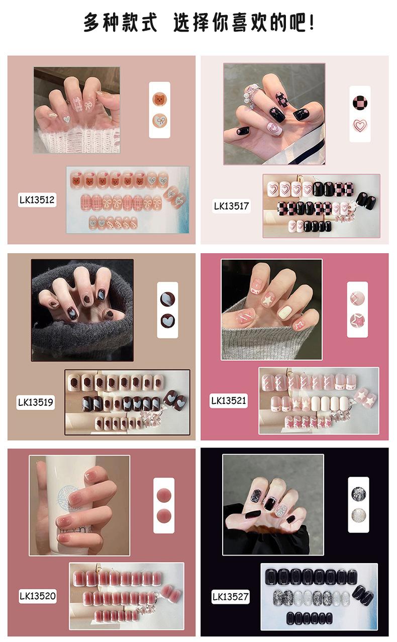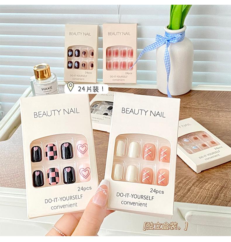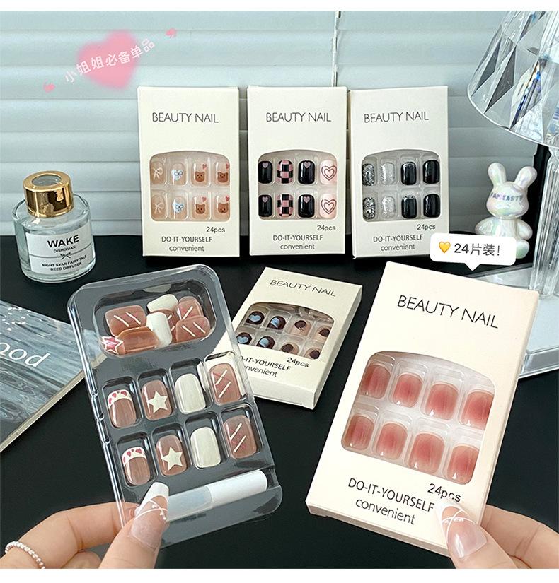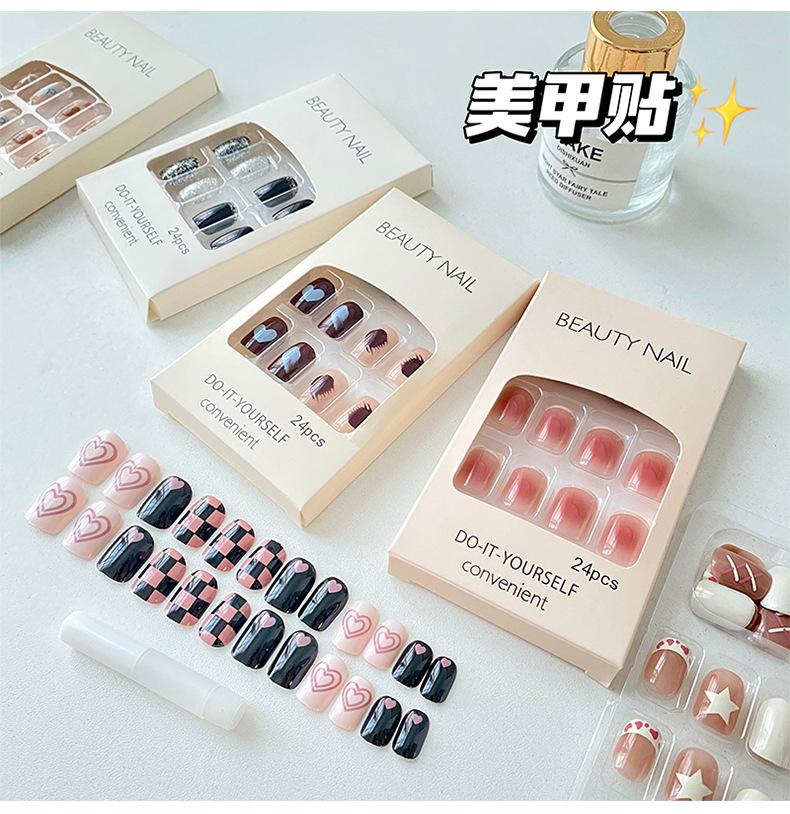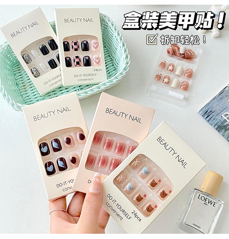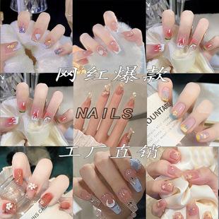 Douyin Xiaohongshu Estilo Popular Arte de Uñas Portátil para Niña Uñas Postizas Parches Super Flash Arte de Uñas Rubor Piezas de Uñas Acabadas Venta al por Mayor