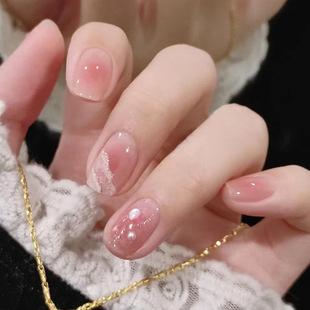 Xiaohongshu Douyin Uñas Postizas Hechas a Mano Uñas Portátiles Pegamento Jelly Uñas Postizas Cortas Removibles Acabado Rubor Estilo Temperamento Puntas de Uñas