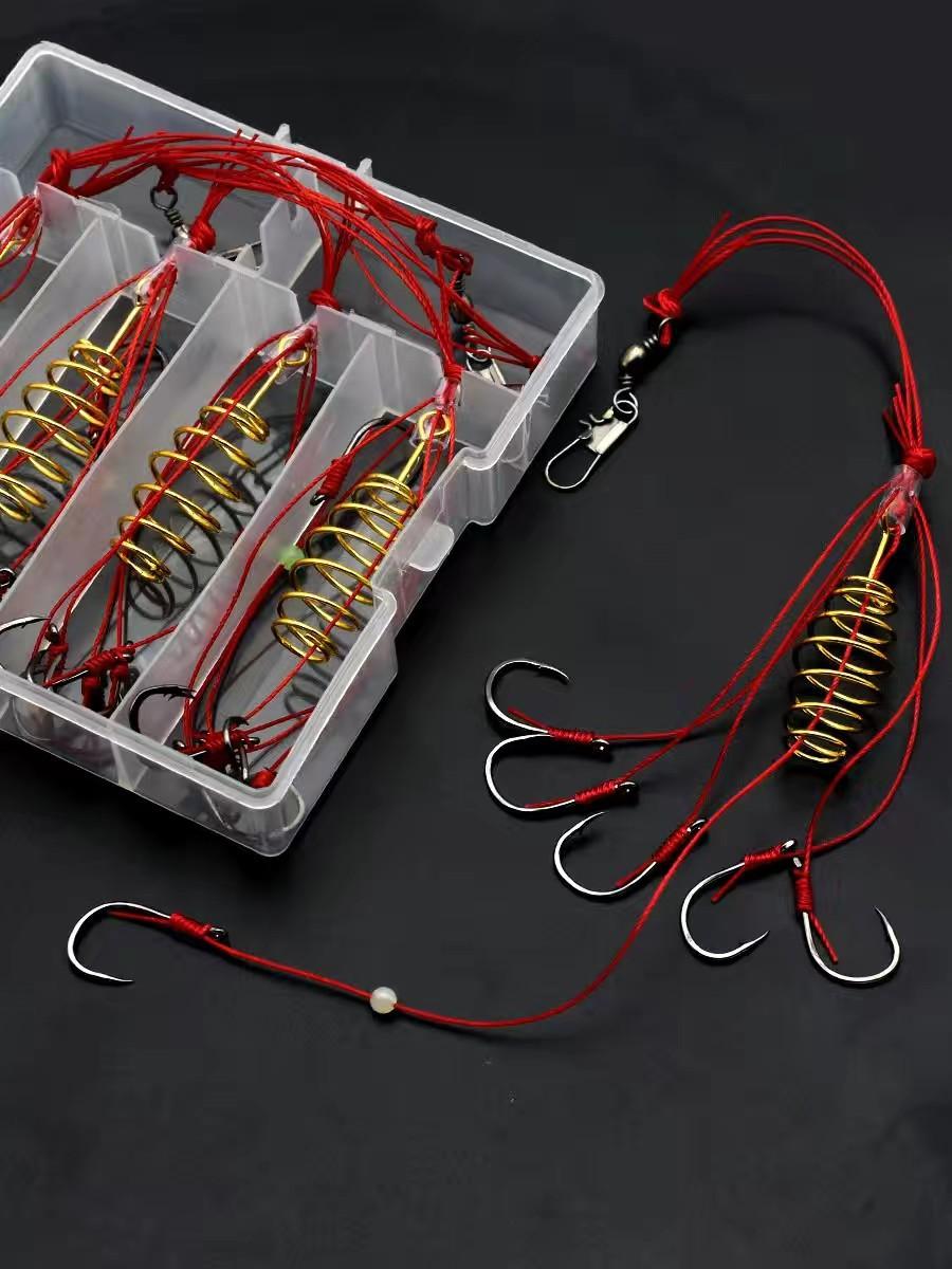 Características: Los anzuelos de línea secundaria ordinarios tienen dos anzuelos, y la tasa de peces capturados es baja. El anzuelo explosivo tiene múltiples anzuelos, lo que aumenta la tasa de peces capturados.