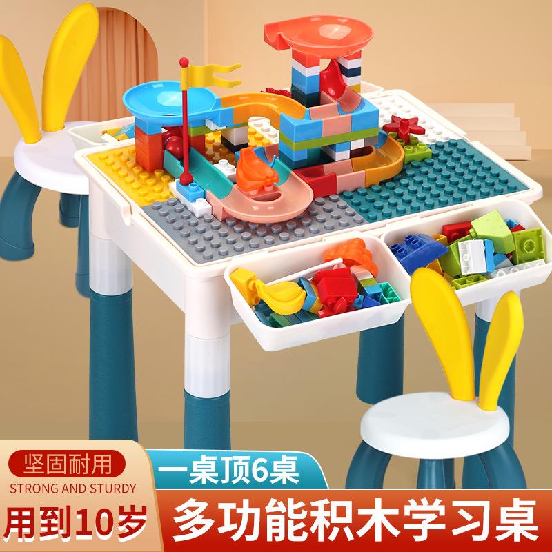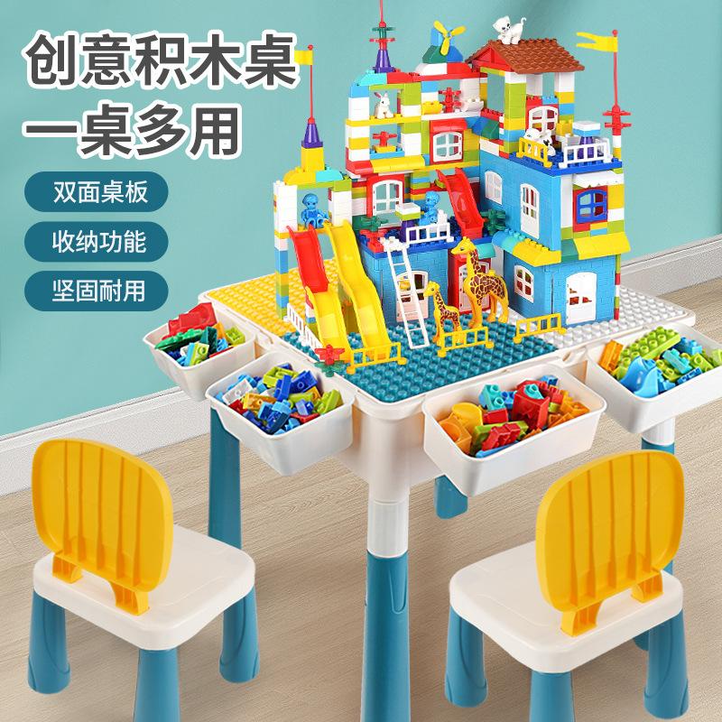 Large-particle rectangular building block table 4 increased 4 storage non-slip mat 2 chair 90 large particles