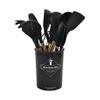 Juego de 12 utensilios de cocina de silicona, pala y cuchara con mango de madera para el hogar con cilindro de almacenamiento, juego de utensilios de cocina, espátula para saltear, venta al por mayor