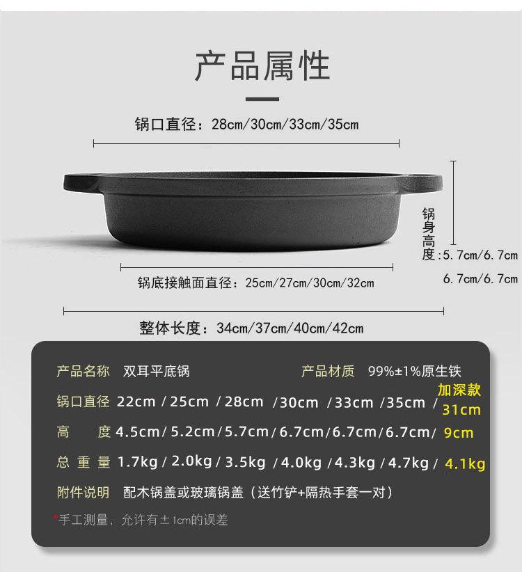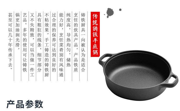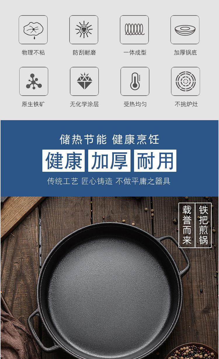 Sartén de hierro fundido antiadherente sin revestimiento para panqueques, bolsa para freír con agua, gruesa, hecha a mano, de hierro crudo, universal para cocina de inducción.