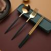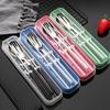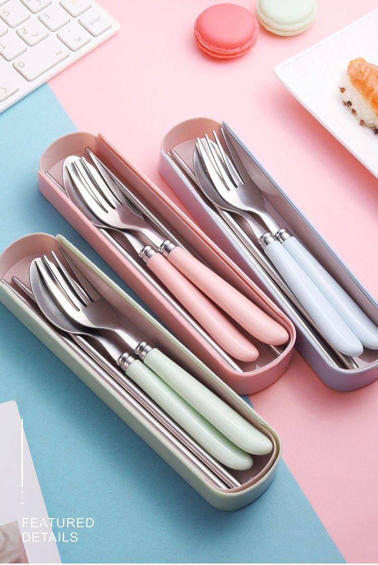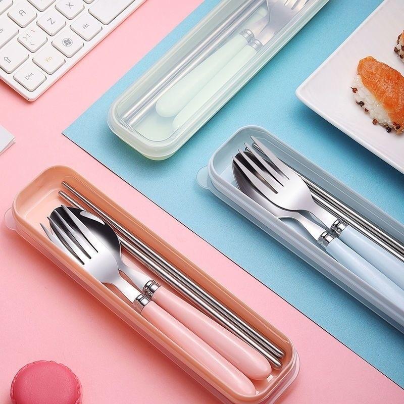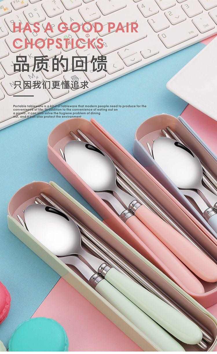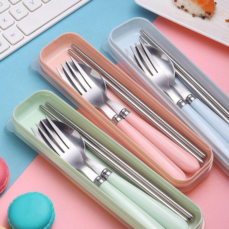 Juego de regalo de tres piezas de tenedor, palillos y cuchara para estudiantes, para viajes al aire libre, extraíble, portátil, de acero inoxidable.