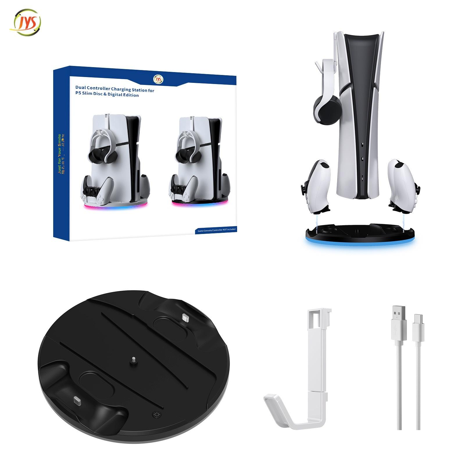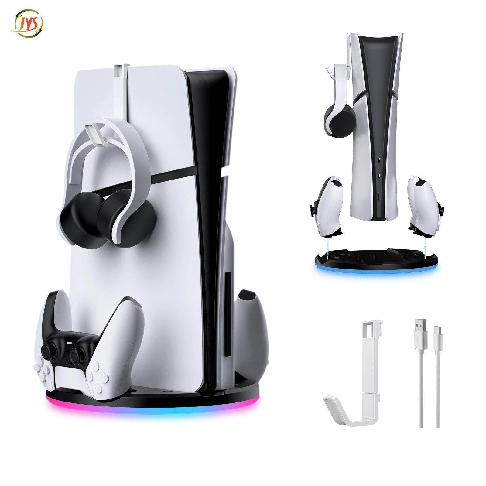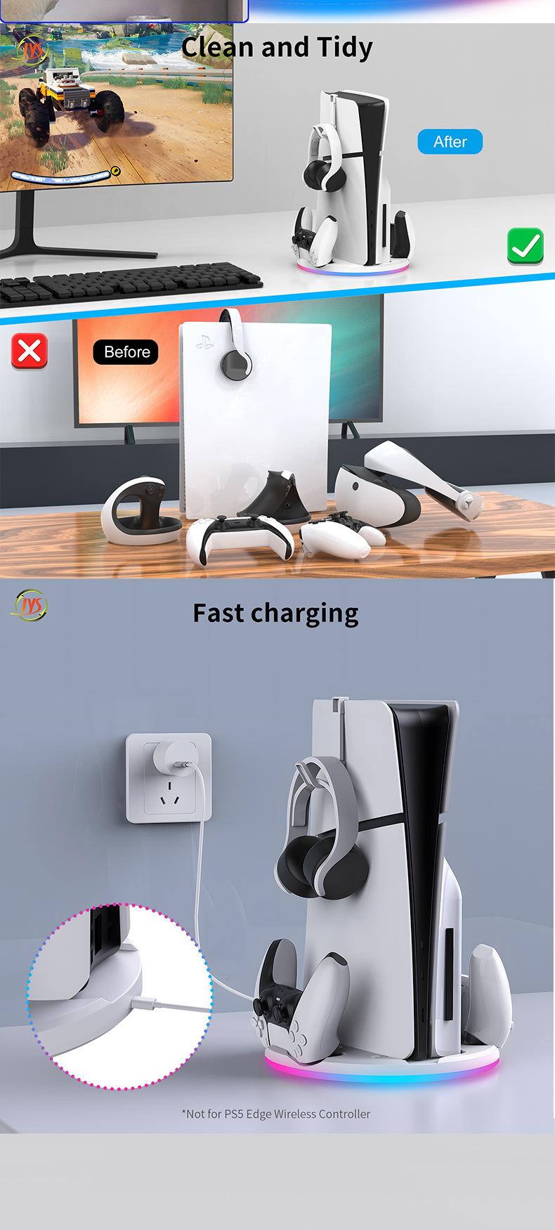 Soporte base para PS5 slim versión con unidad óptica/versión digital, soporte para mando de juegos PS5 con carga y anillo de luz ambiental