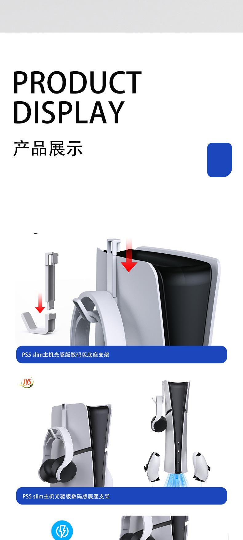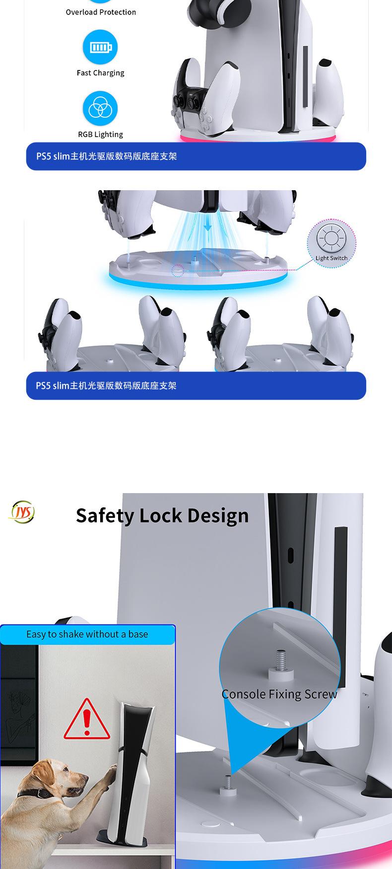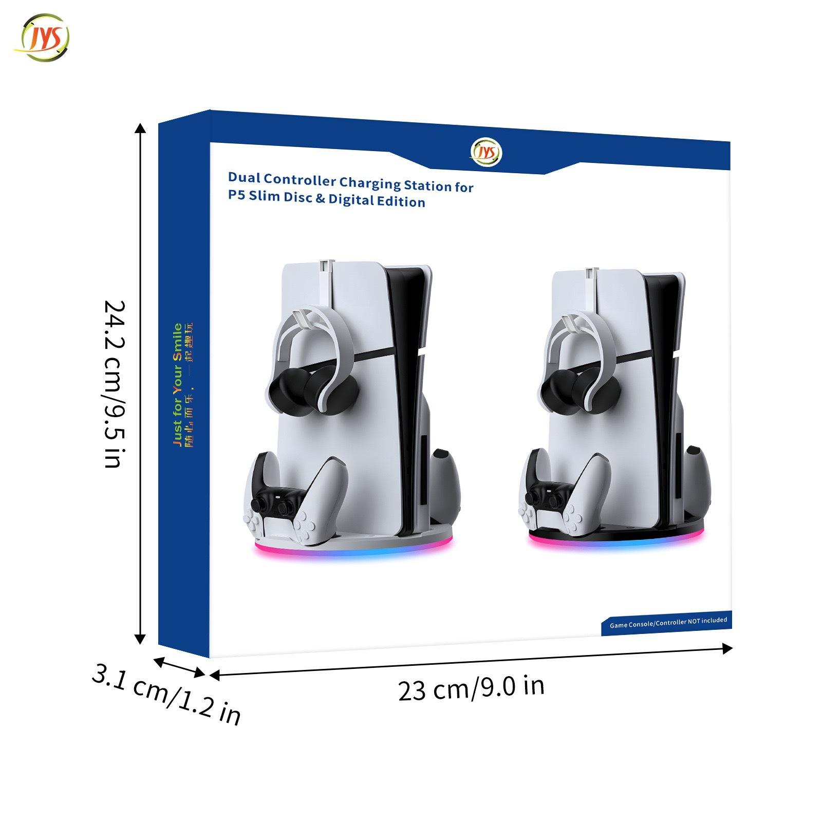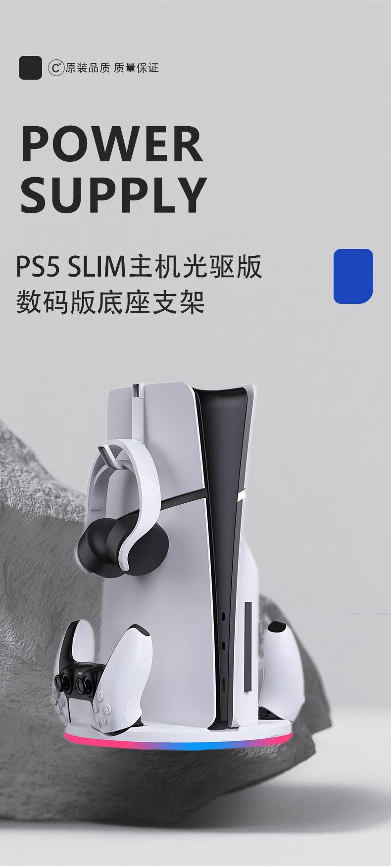 Soporte base para PS5 slim versión con unidad óptica/versión digital, soporte para mando de juegos PS5 con carga y anillo de luz ambiental