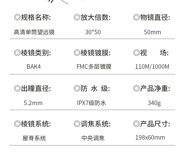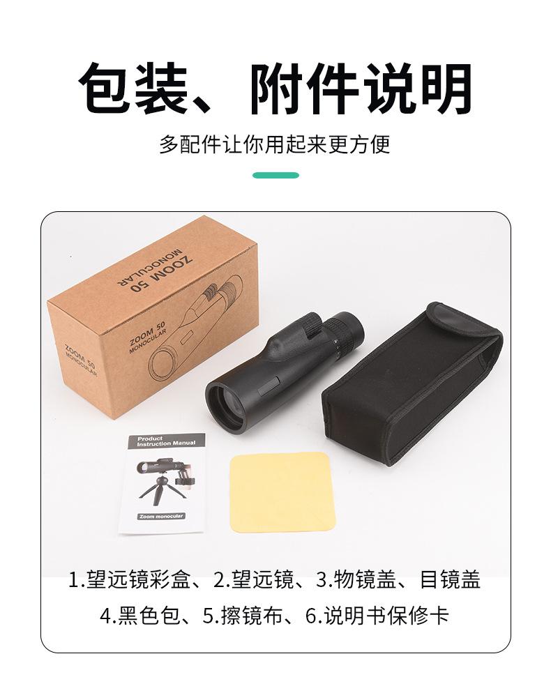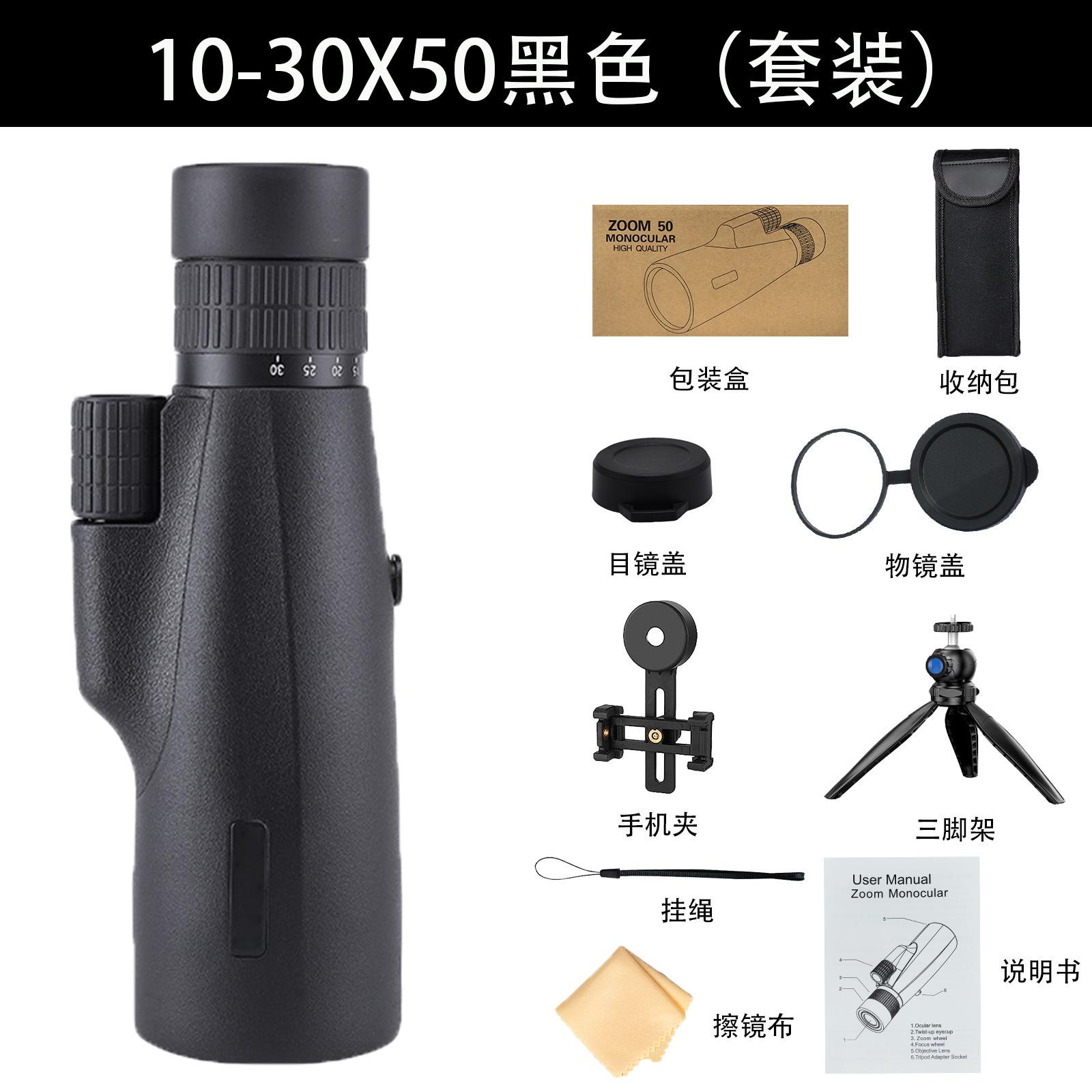 10-30X50 black, 10-30X50 black + mobile phone clip, 10-30X50 black + mobile phone clip + tripod, 10-30X50 green