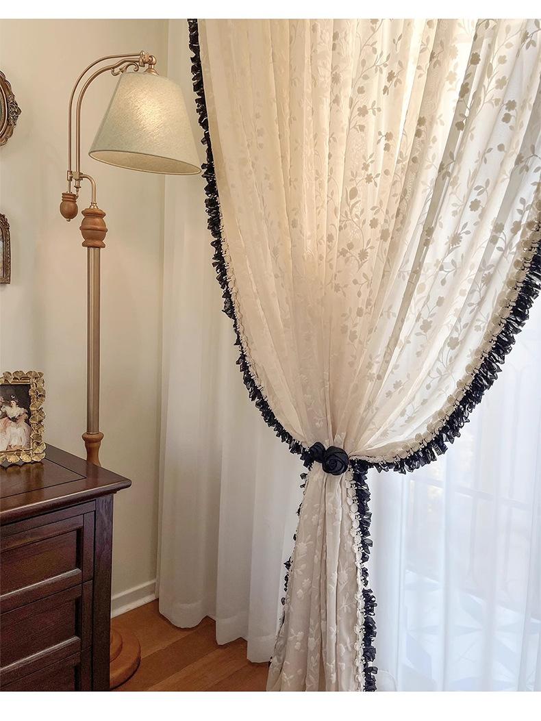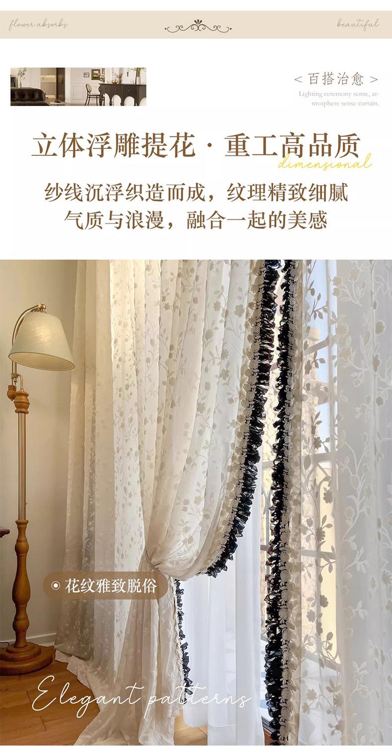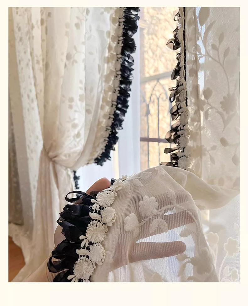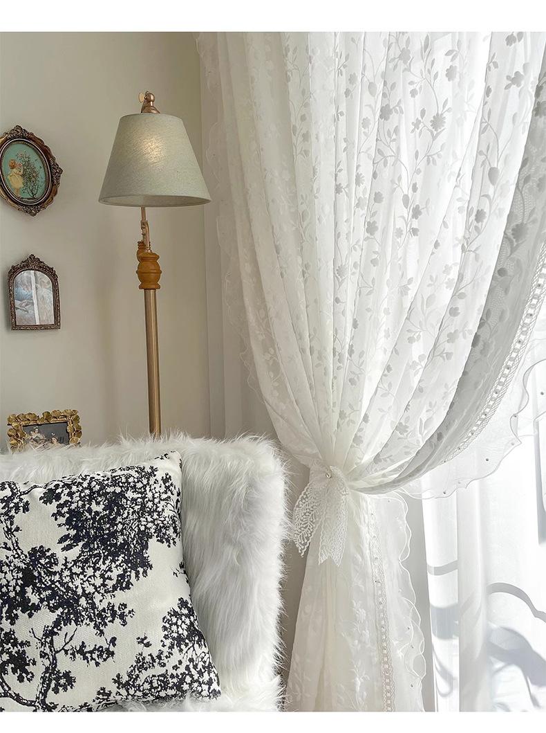Nueva Pantalla de Ventana Romántica Suave y Cómoda Translúcida Opaca Estilo Francés Retro Resistente con Relieve Cortina de Encaje
