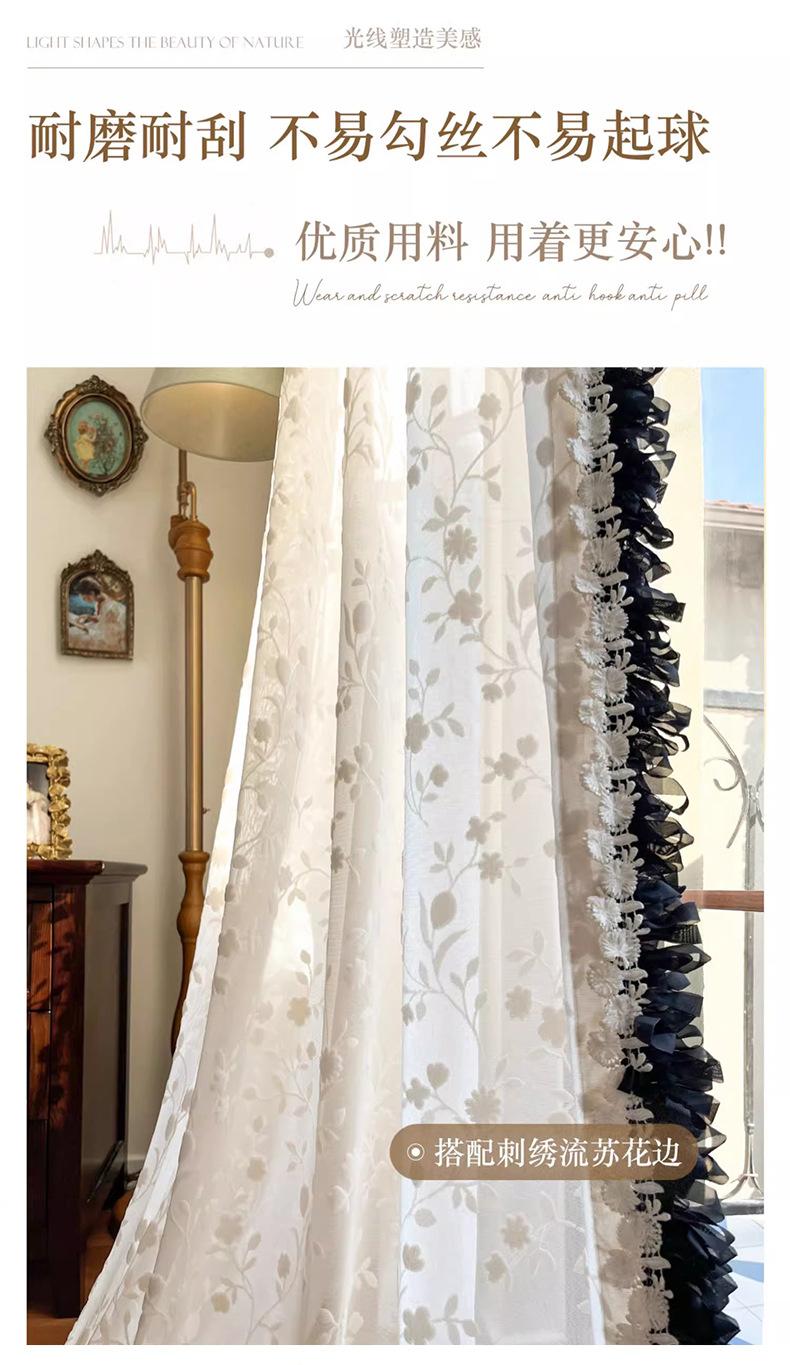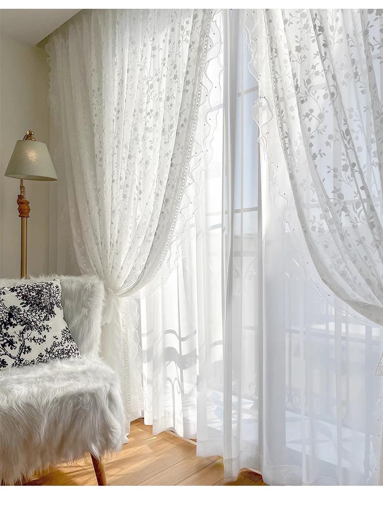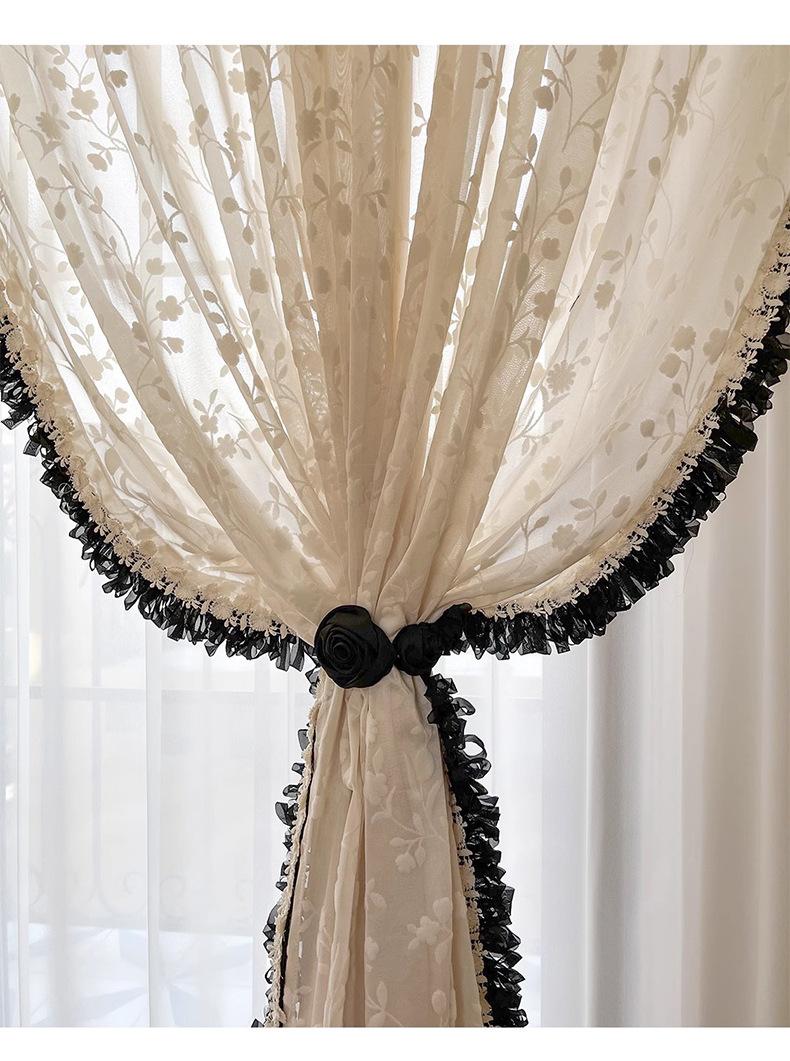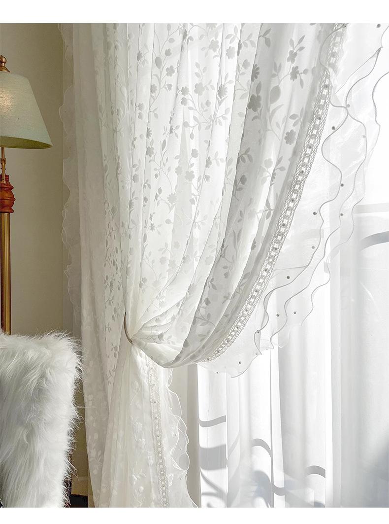 Nueva Pantalla de Ventana Romántica Suave y Cómoda Translúcida Opaca Estilo Francés Retro Resistente con Relieve Cortina de Encaje