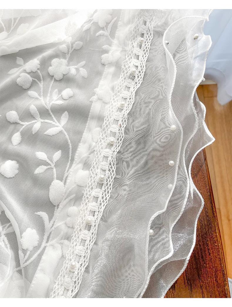 Man Shadow Yarn-White Korean Pleat, embroidery tassel black lace, Pearl three-layer lotus leaf white lace, But...