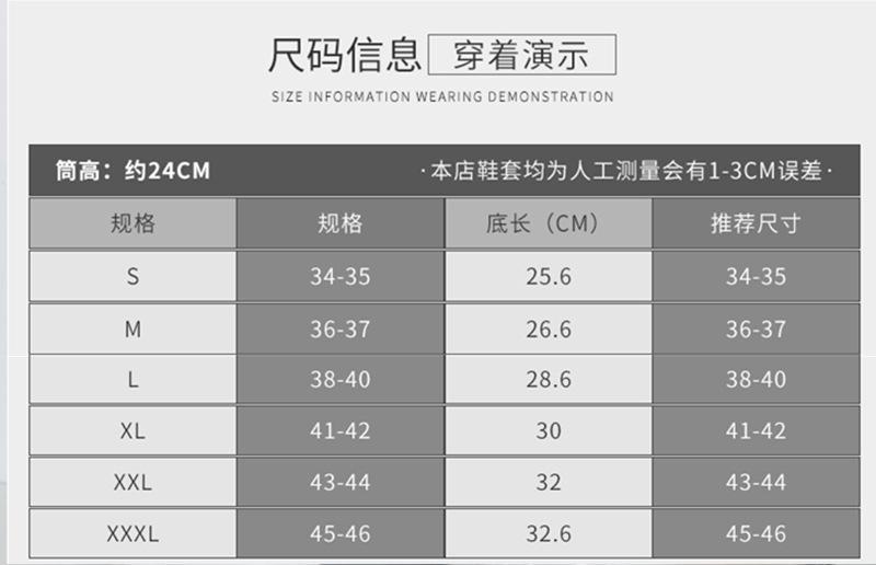 S size (35-36), M size (37-38), L size (39-40), Xl code (41-42), 2xl size (43-44), 3xl size (45-46)