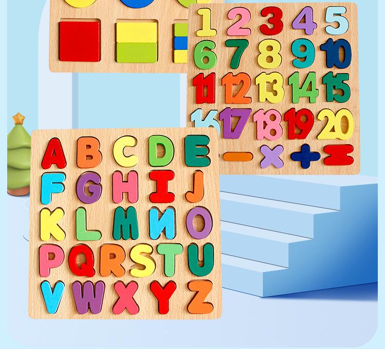 Compra Tablero de madera con alfabeto para niños, rompecabezas digital, panel portátil, rompecabezas de educación temprana, juguetes educativos geométricos a juego al por mayor en Joom.pro