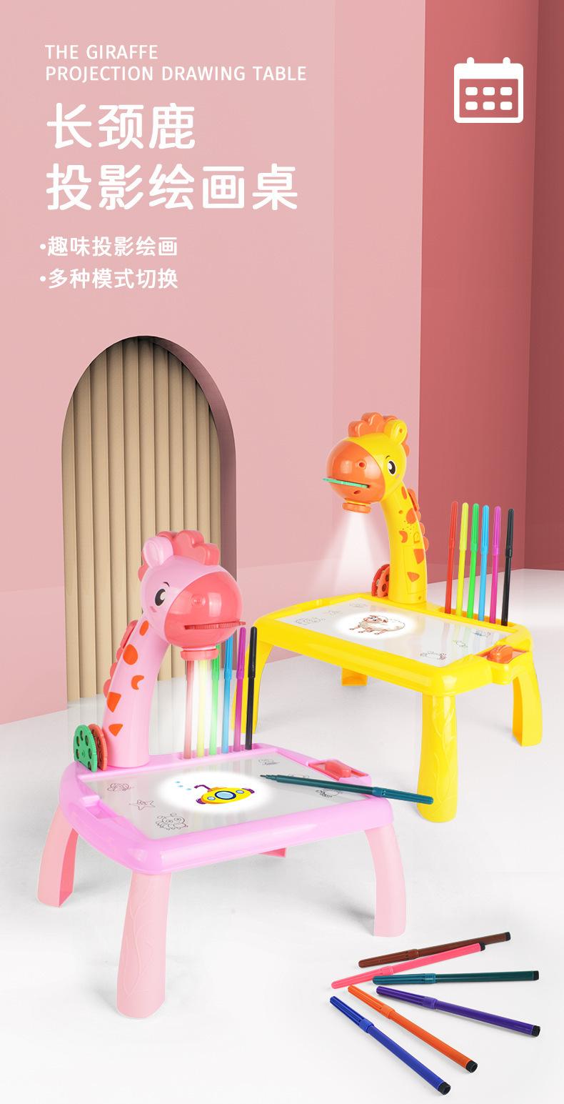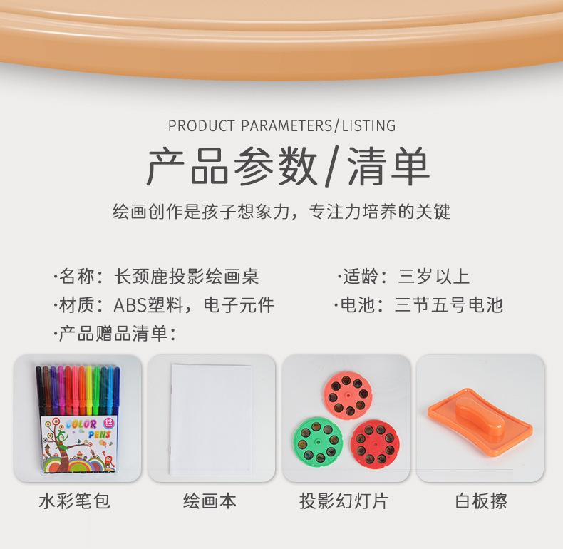 Mesa de dibujo de proyección multifuncional forma de ciervo de dibujos animados con sonido y luz tablero de escritura graffiti juguetes educativos para niños transfronterizos