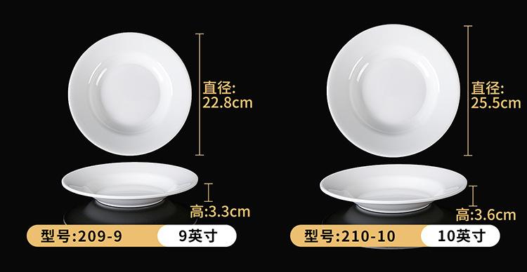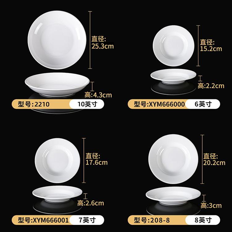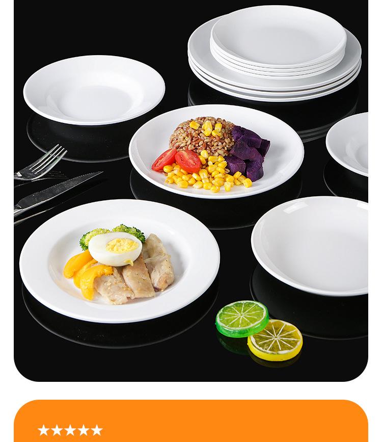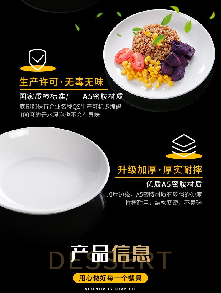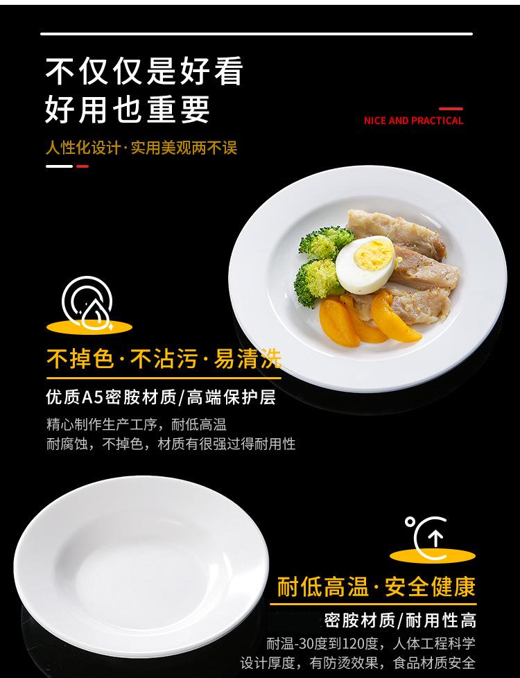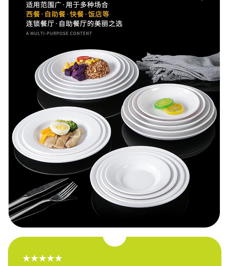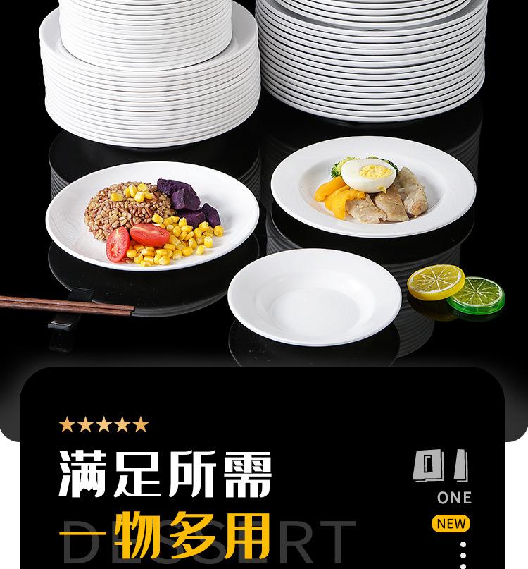 Plato blanco de melamina para restaurante, hotel, plato hondo con disco de fideos, plato de hueso comercial, plato de sopa de porcelana de imitación con plato de arroz
