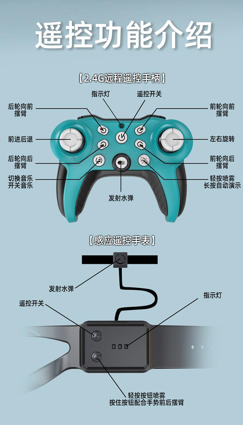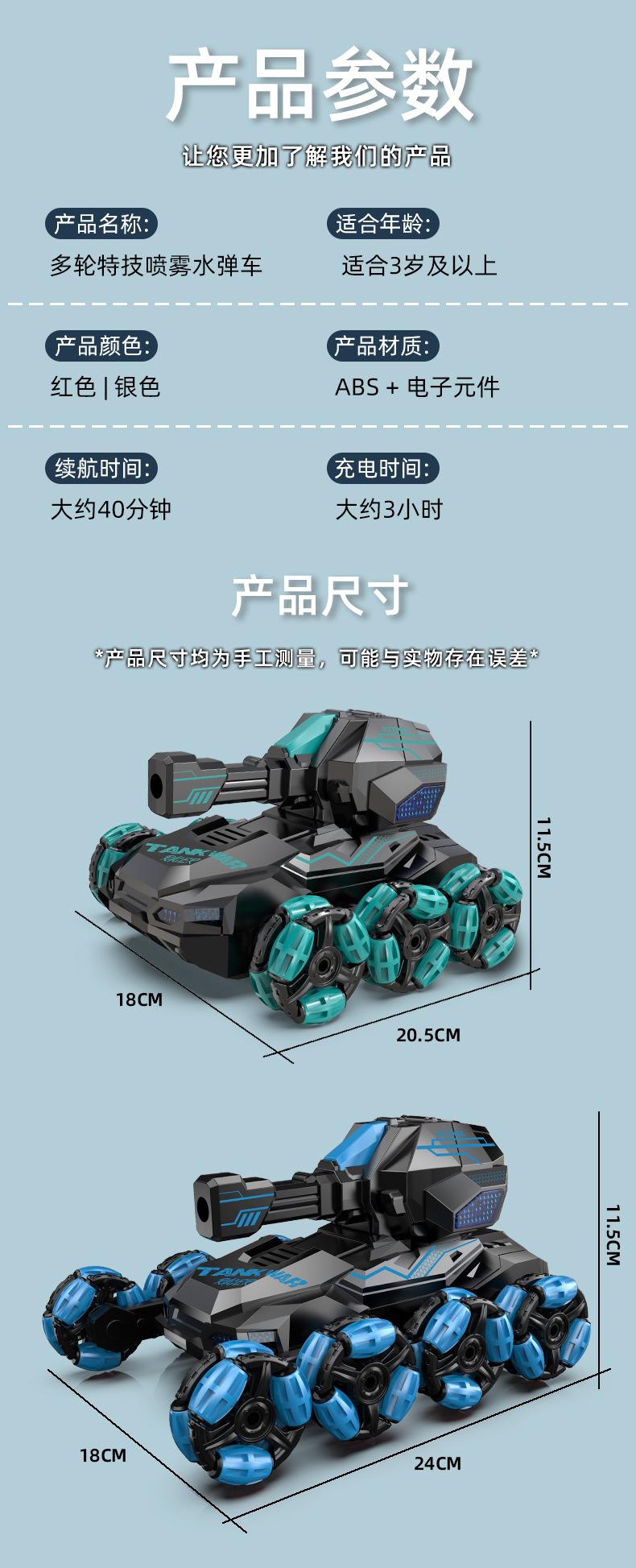 Compra Carro mecha de bomba de agua de ocho ruedas, rociador de chispas frías, acrobacias de escalada, control remoto flexible, juguete de regalo de cumpleaños para niño al por mayor en Joom.pro