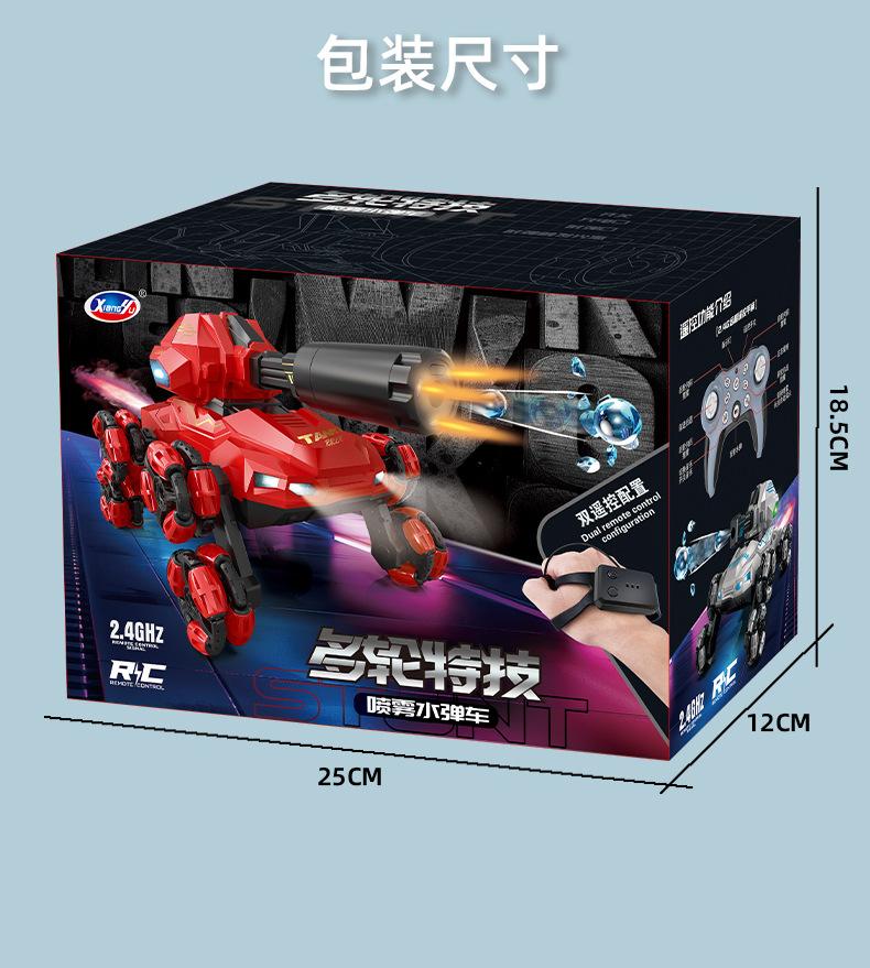 Carro mecha de bomba de agua de ocho ruedas, rociador de chispas frías, acrobacias de escalada, control remoto flexible, juguete de regalo de cumpleaños para niño