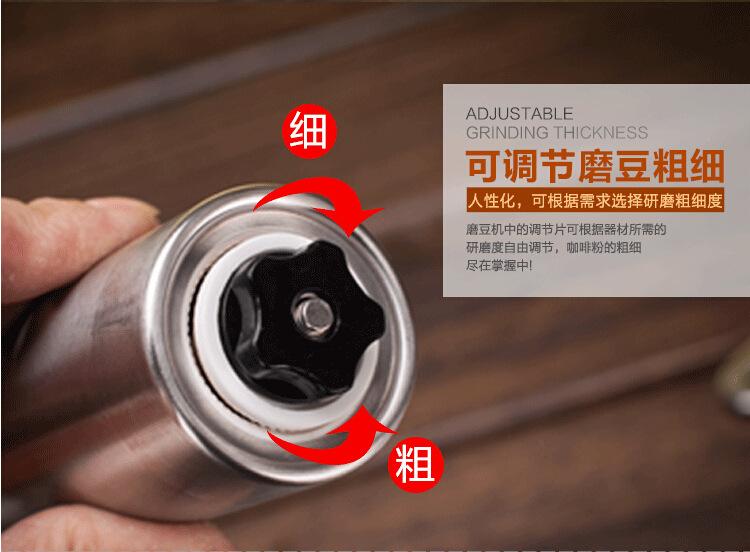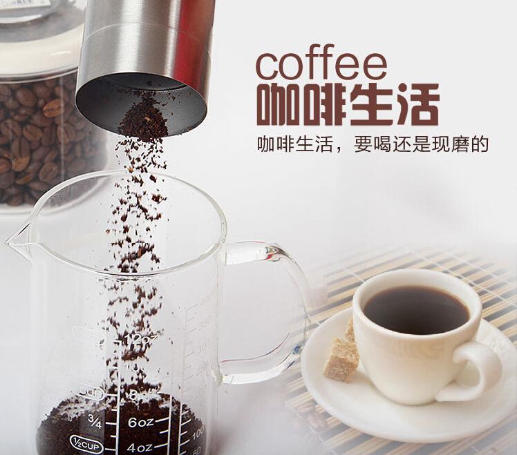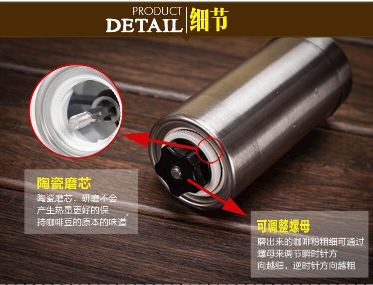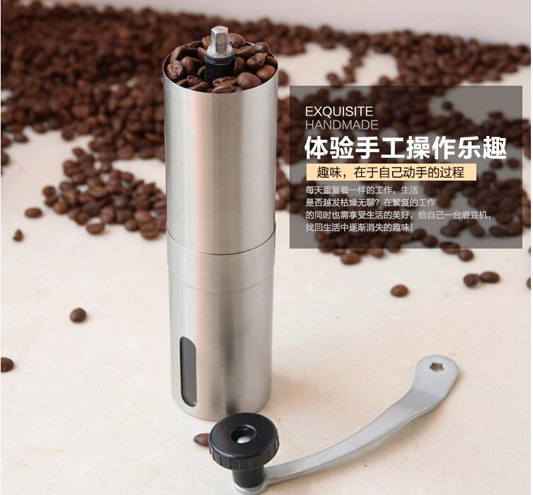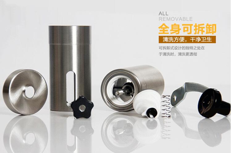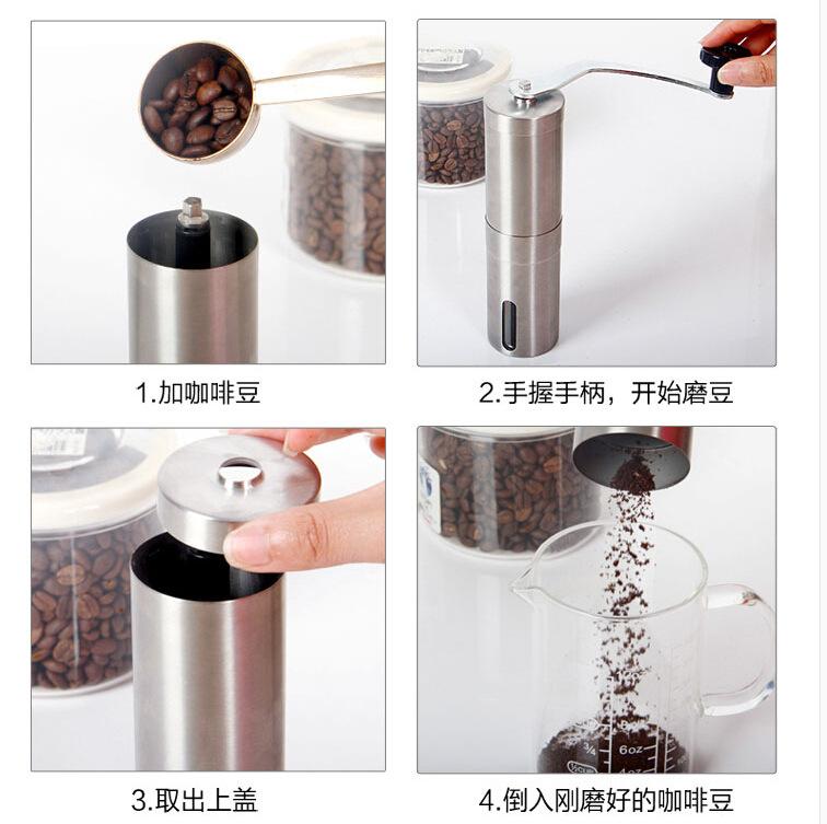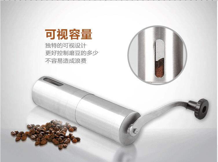 Molinillo de café manual pequeño de acero inoxidable Material: 304 Peso: 265g Capacidad: 30g Tamaño del empaque: 6*6*16.5cm Especificación de embalaje pequeño: 50 piezas/caja peso: 13 KG