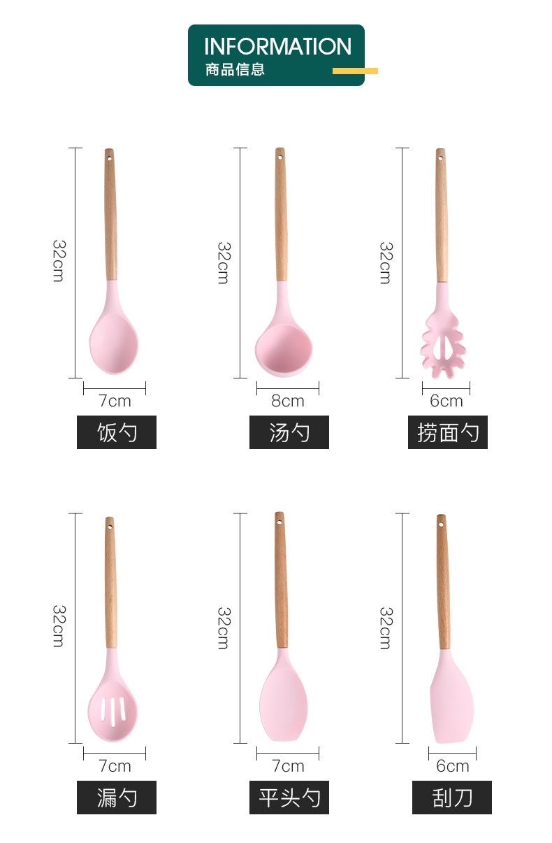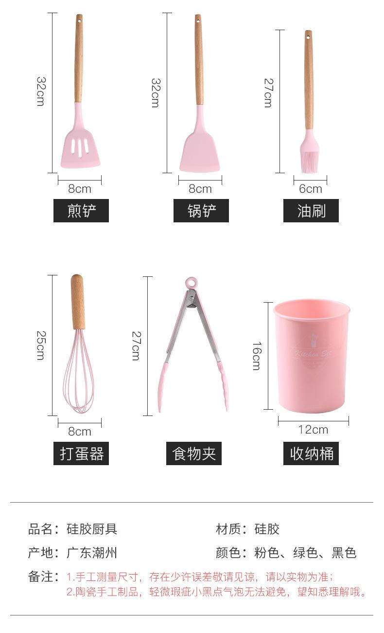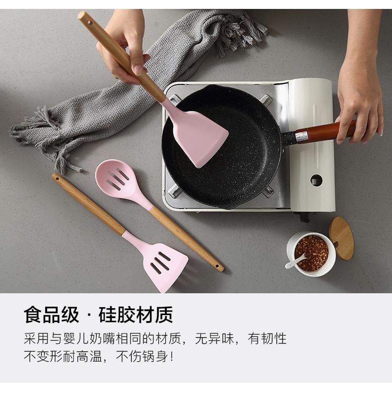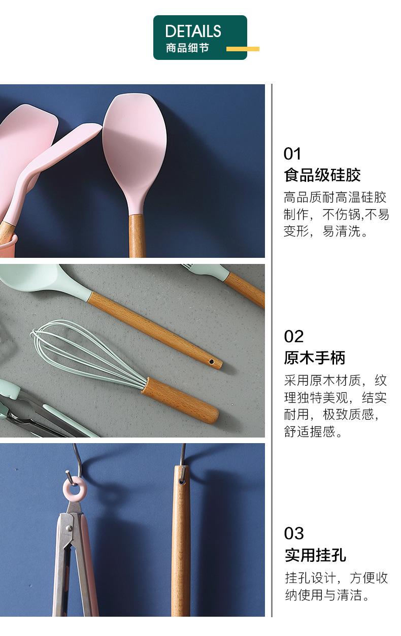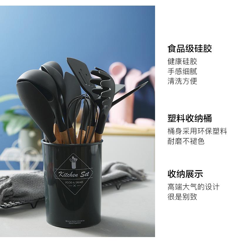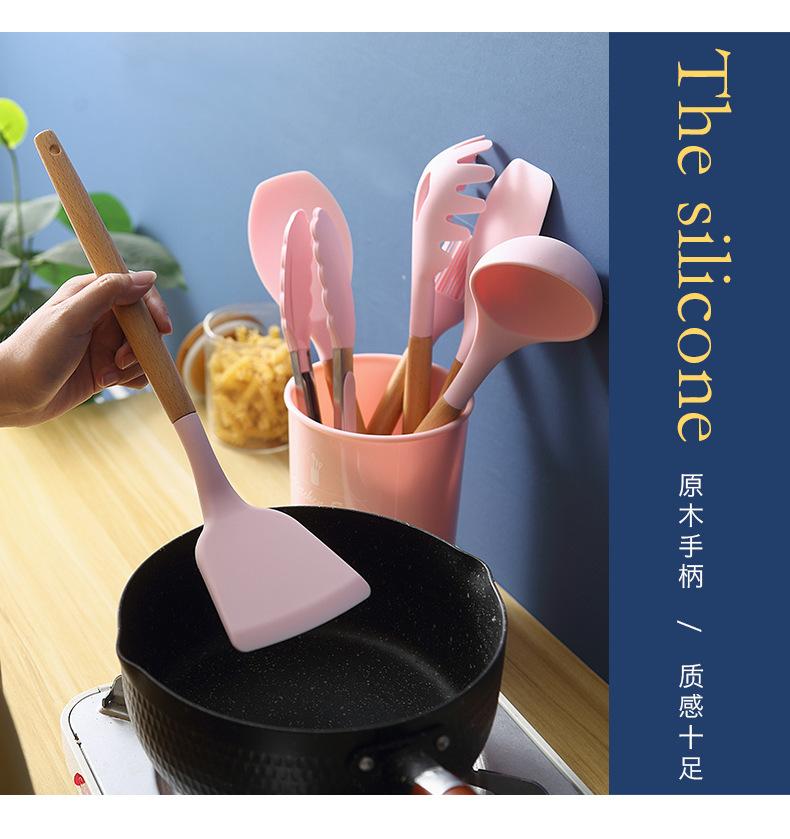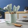 Juego de 11 utensilios de cocina de silicona con mango de madera, fácil de almacenar y cocinar en la cocina.