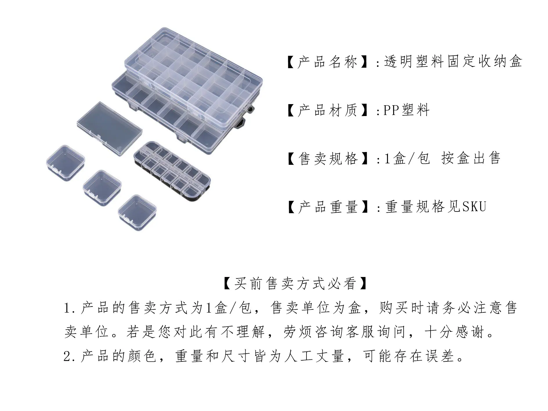 Cajas de Almacenamiento Fijas de Plástico Transparente de Múltiples Estilos, Cajas de Almacenamiento y Organización Multicompartimento Desmontables, Cajas de Embalaje para Joyería al Por Mayor