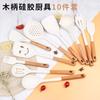 Juego de 12 piezas de utensilios de cocina domésticos de silicona con mango de madera transfronterizo, espátula antiadherente para cocinar, cuchara para sopa, juego de utensilios de cocina de silicona
