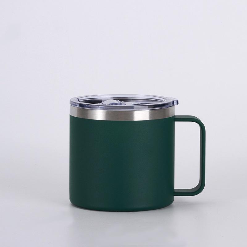 Taza de acero inoxidable 304 de 14 oz, mini taza de café portátil al vacío, taza con asa para oficina, taza térmica
