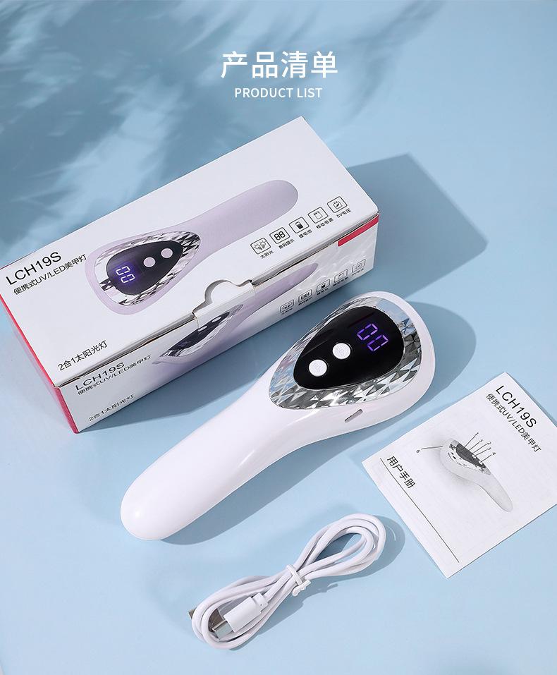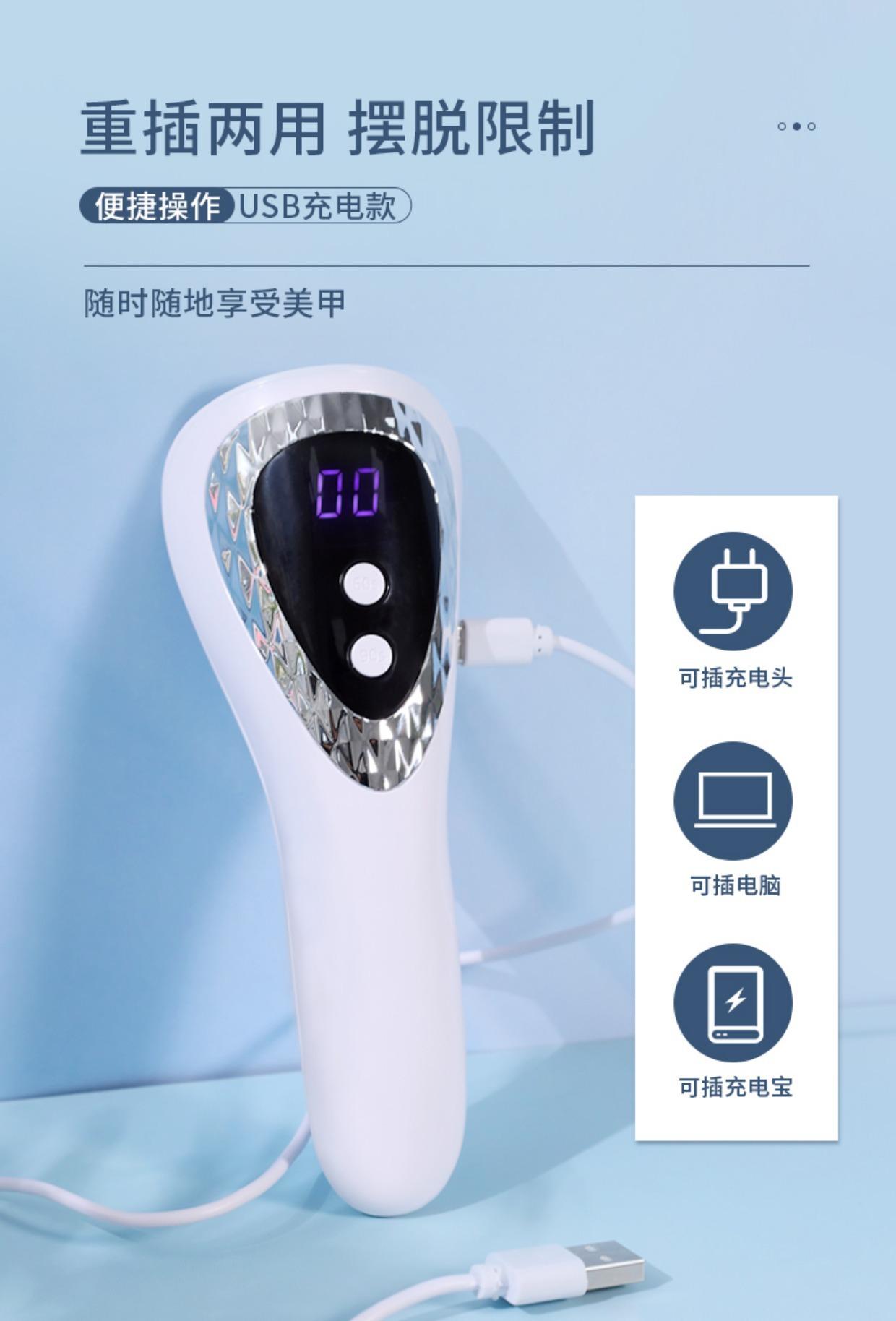 Lámpara de fototerapia portátil para manicura, práctica lámpara de horneado con pegamento para esmalte de uñas, pequeña y no negra, con pantalla LED recargable para el hogar