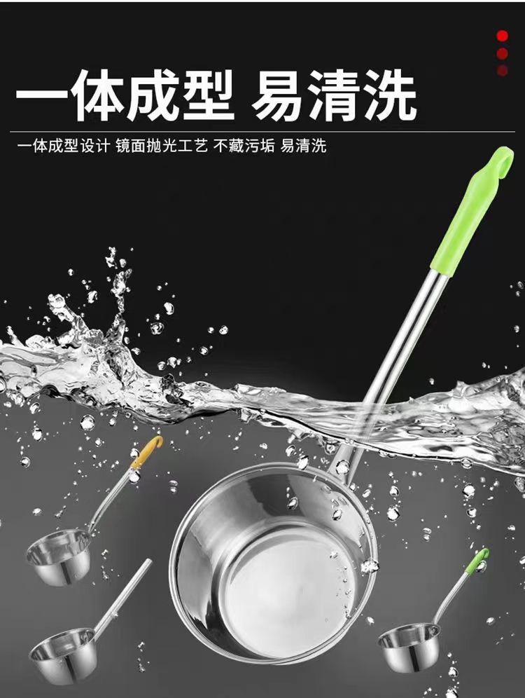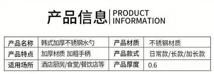 Cuchara de acero inoxidable espesada, cuchara para agua, cuchara para gachas de cocina con mango largo, cuchara para sopa, cuchara para agua estilo coreano