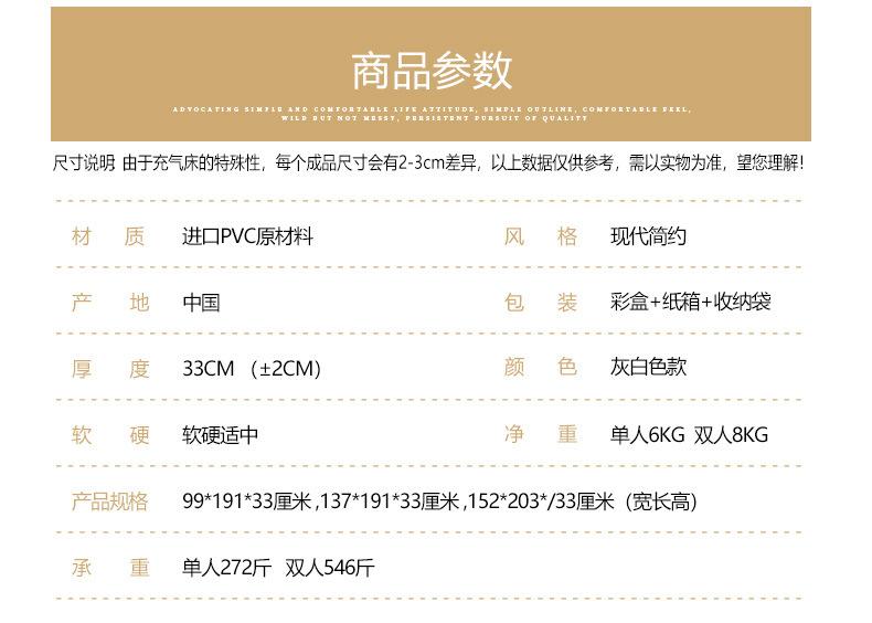Especificaciones: 152 cm x 203 cm x 33 cm